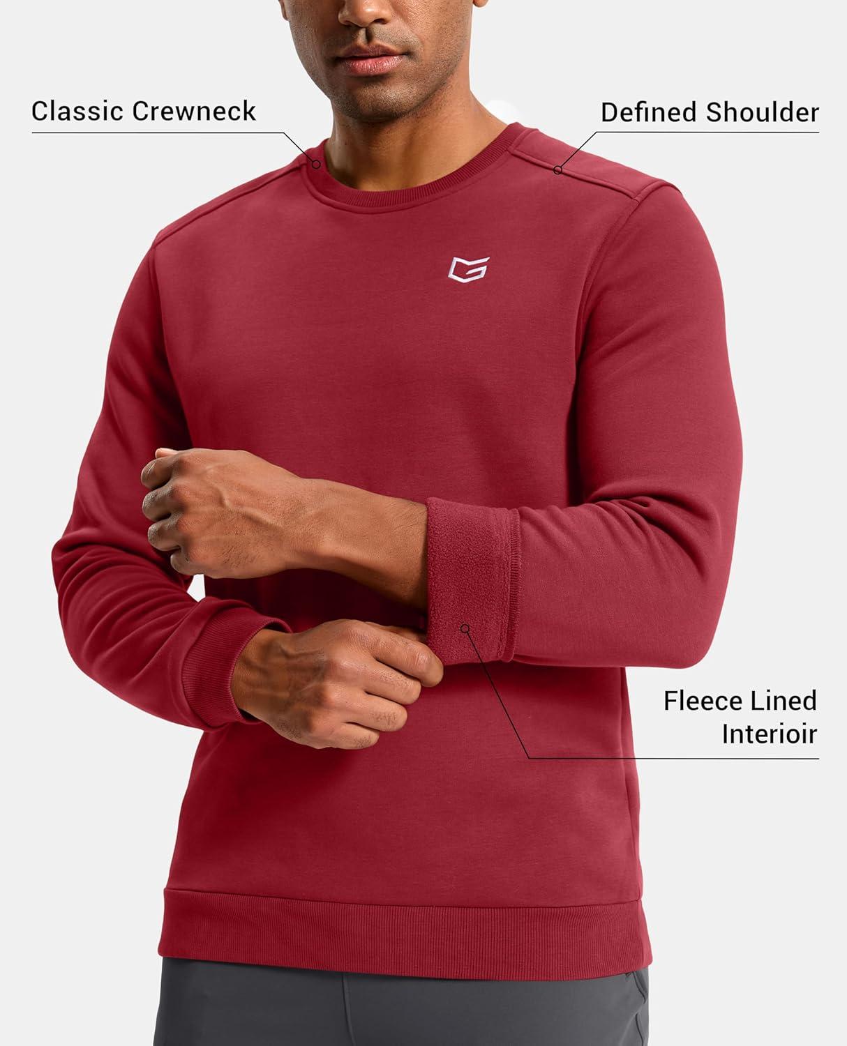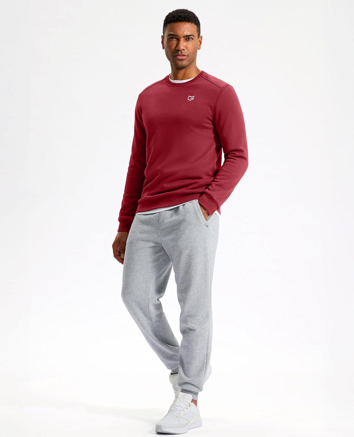 G Gradual Men's Fleece Lined Crewneck Sweatshirt Midweight Regular Fit Athletic Workout Warm Pullover Sweater Shirts(Red)