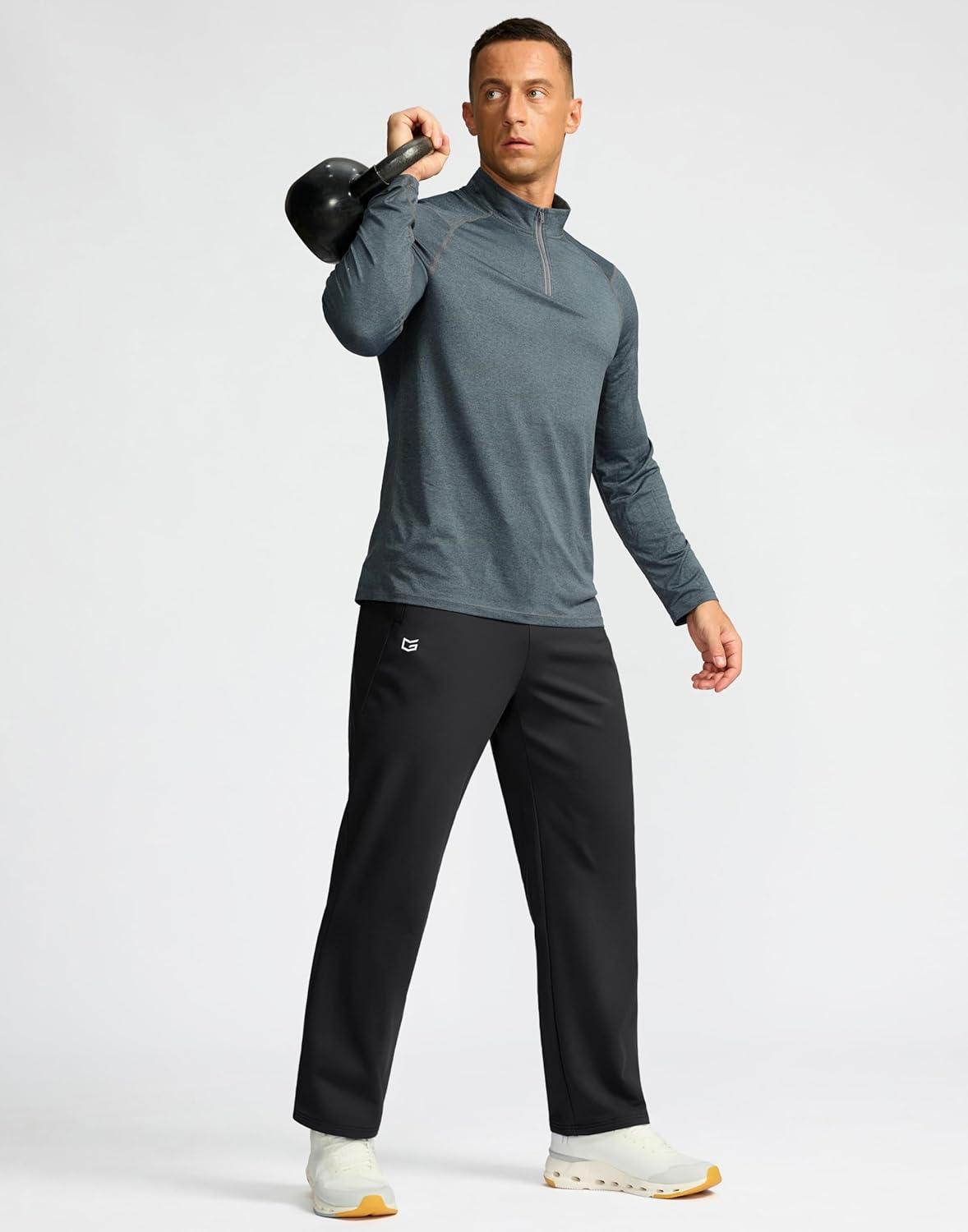 G Gradual Men’s Fleece Lined Pants with 3 Zipper Pockets Water Resistant Winter Warm Hiking Pants Athletic Sweatpants for Men(Black)
