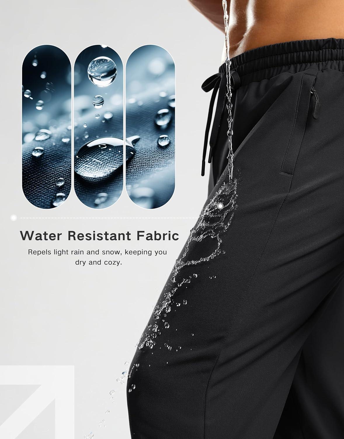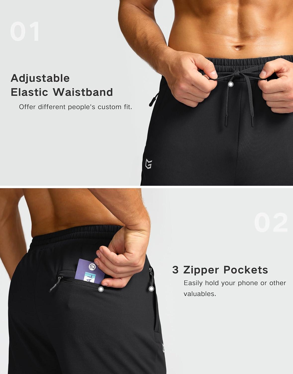 G Gradual Men's Fleece Lined Pants with 3 Zipper Pockets Water Resistant Winter Warm Hiking Pants Athletic Sweatpants for Men(Black)