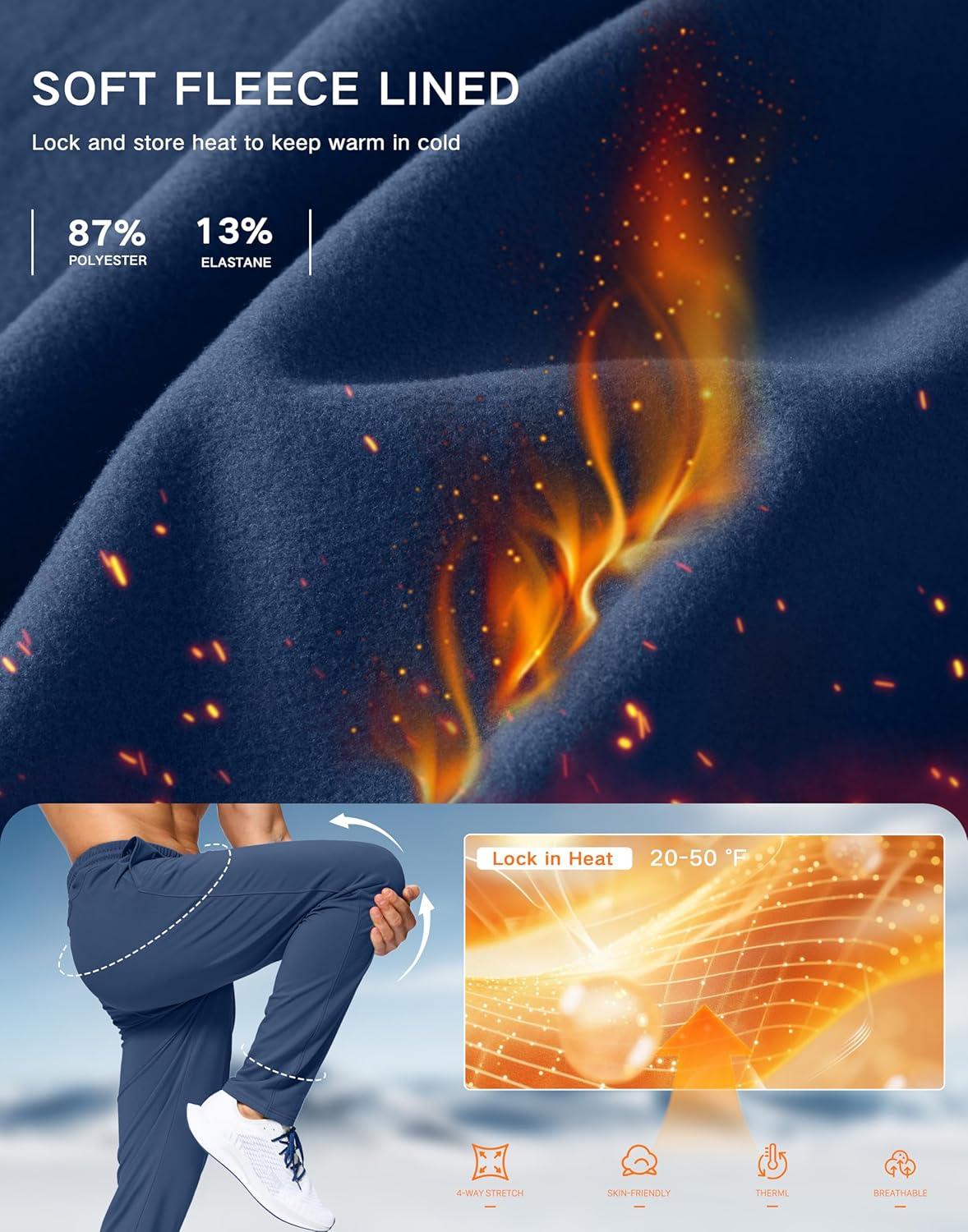 G Gradual Men’s Fleece Lined Pants with Zipper Pocket Winter Warm Athletic Joggers Sweatpants for Men Workout Running Gym(Dark Blue)
