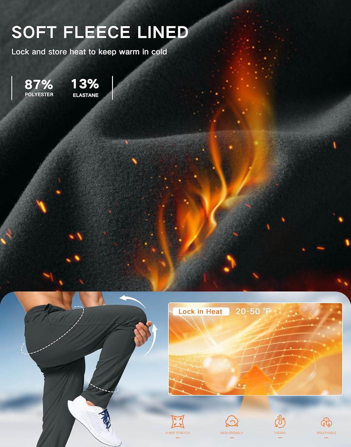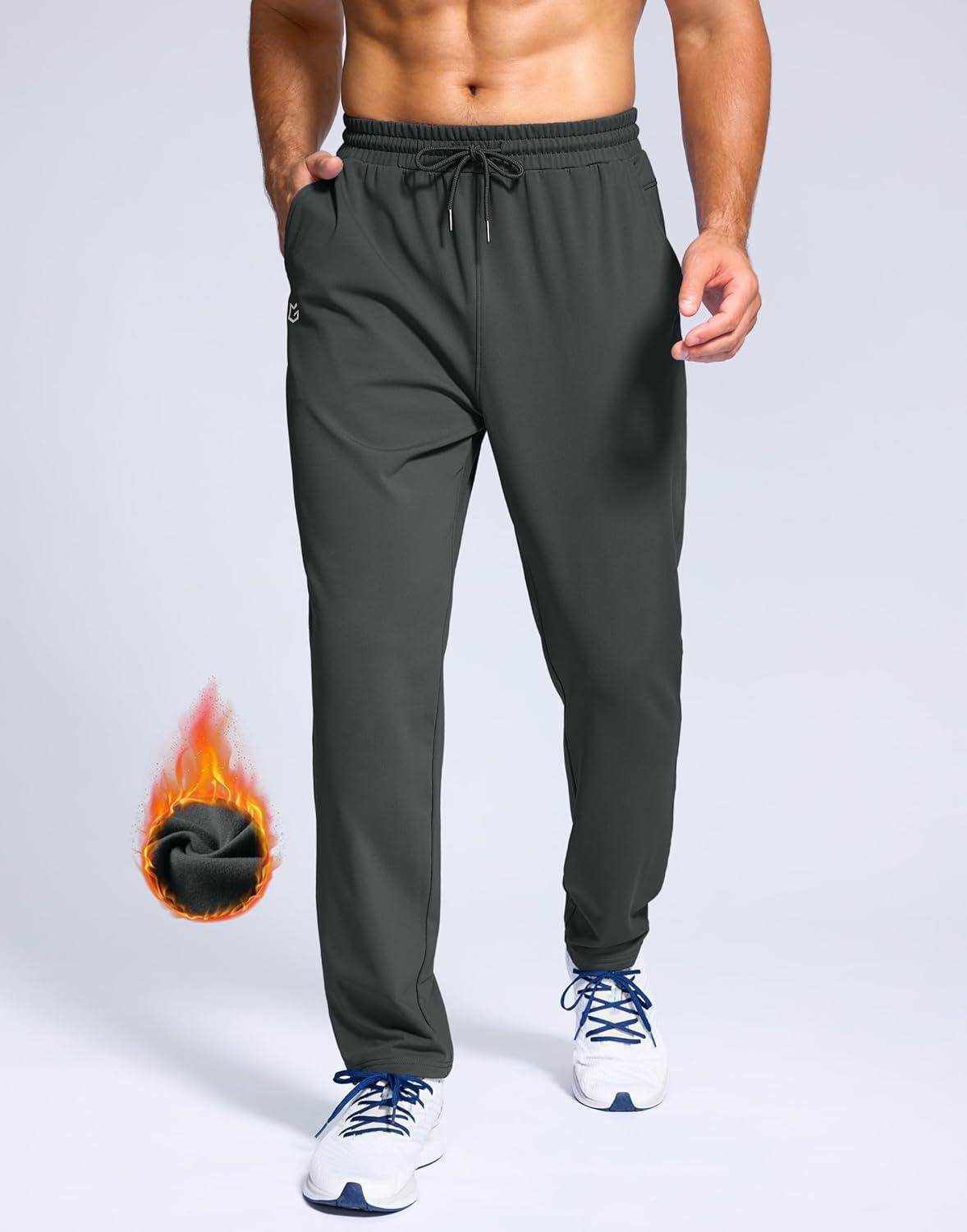G Gradual Men’s Fleece Lined Pants with Zipper Pocket Winter Warm Athletic Joggers Sweatpants for Men Workout Running Gym(Dark Grey)
