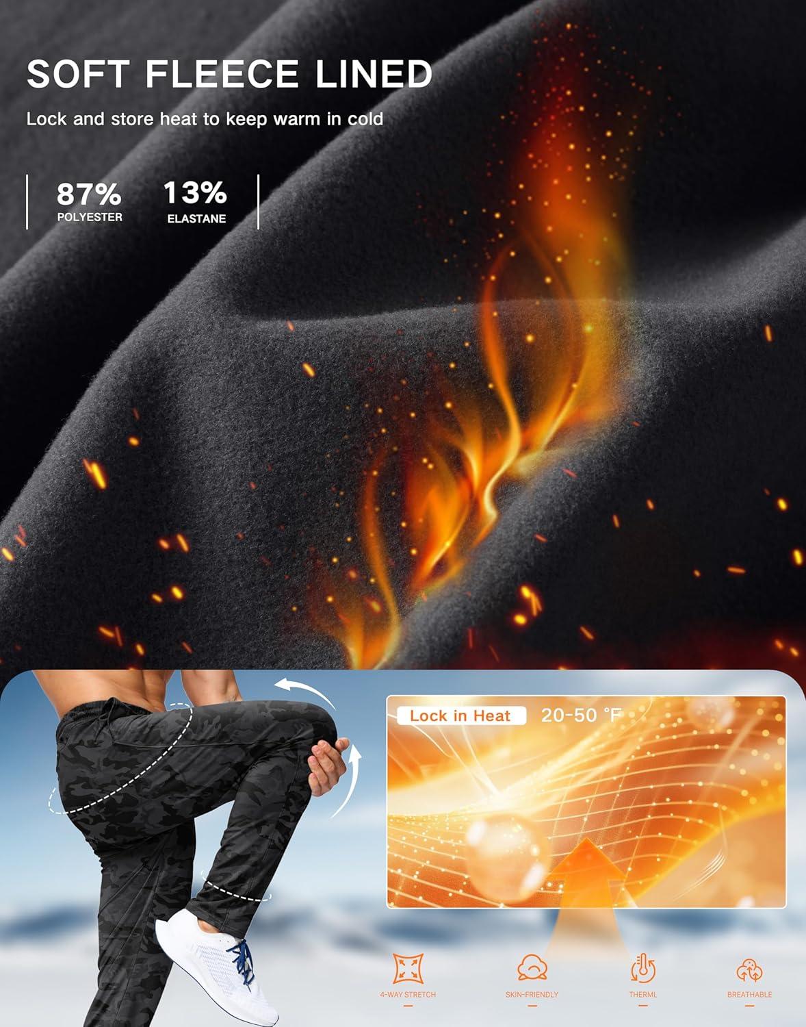 G Gradual Men’s Fleece Lined Pants with Zipper Pocket Winter Warm Athletic Joggers Sweatpants for Men Workout Running Gym(Grey Camo)