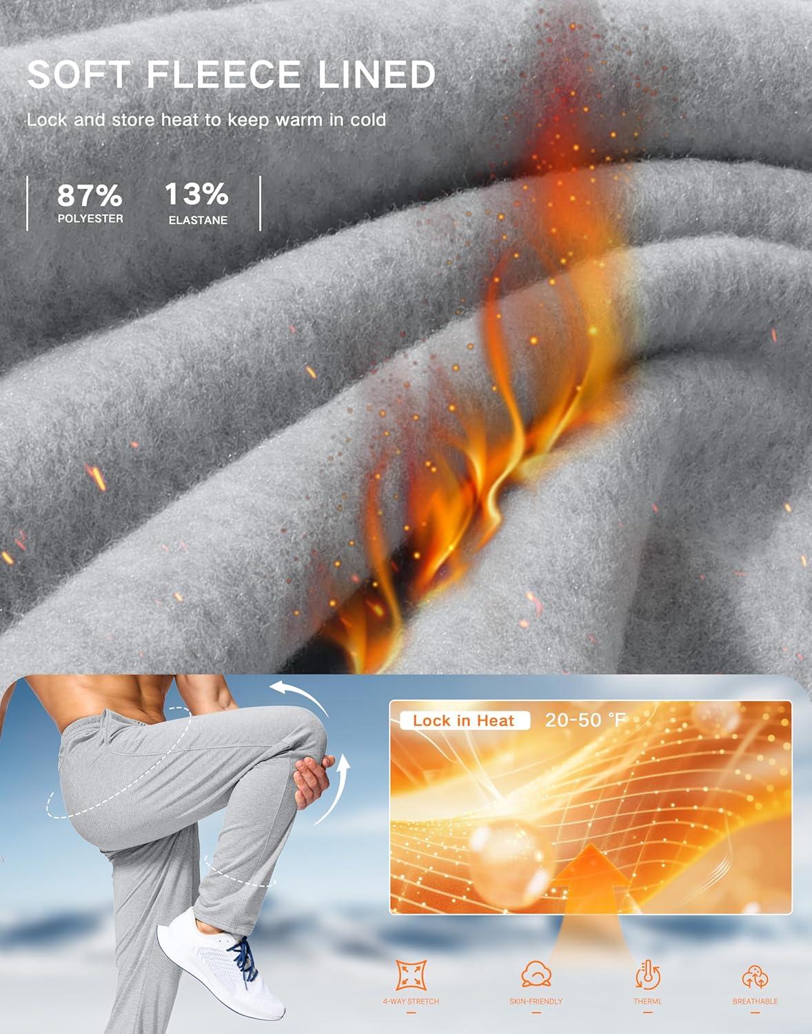 G Gradual Men’s Fleece Lined Pants with Zipper Pocket Winter Warm Athletic Joggers Sweatpants for Men Workout Running Gym(Light Grey)