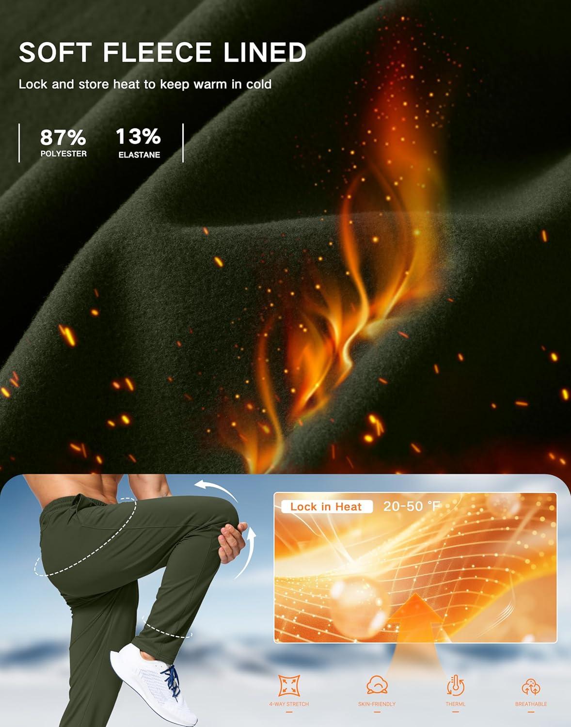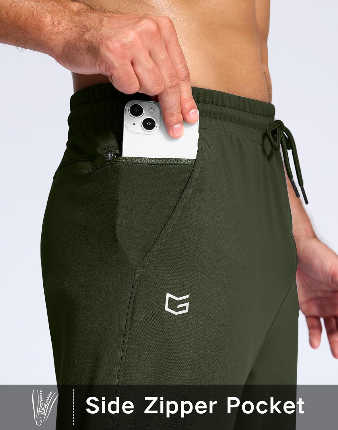 G Gradual Men's Fleece Lined Pants with Zipper Pocket Winter Warm Athletic Joggers Sweatpants for Men Workout Running Gym(Olive)