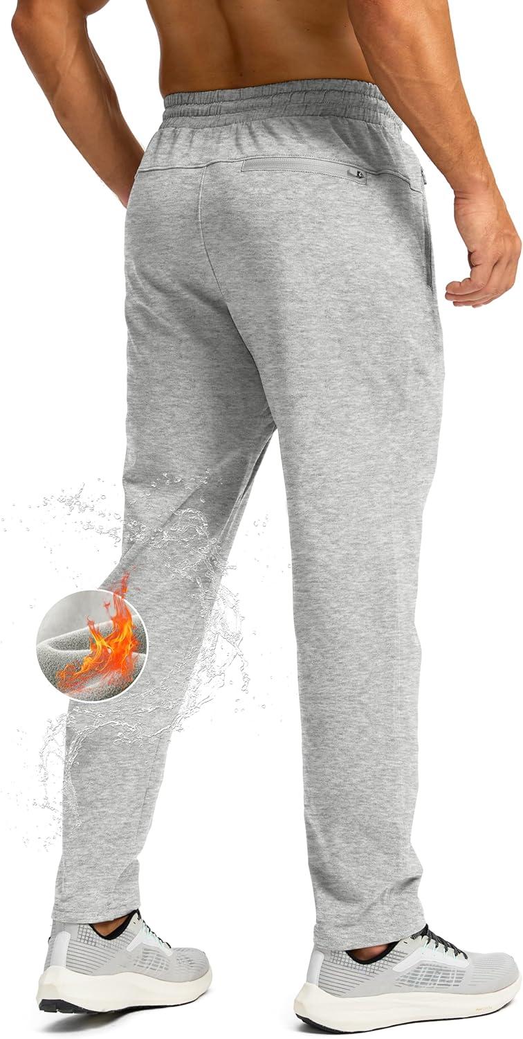 G Gradual Men’s Fleece Lined Winter Pants with 3 Zipper Pockets Warm Athletic Joggers Workout Running Sweatpants for Men(Heather Medium Grey)