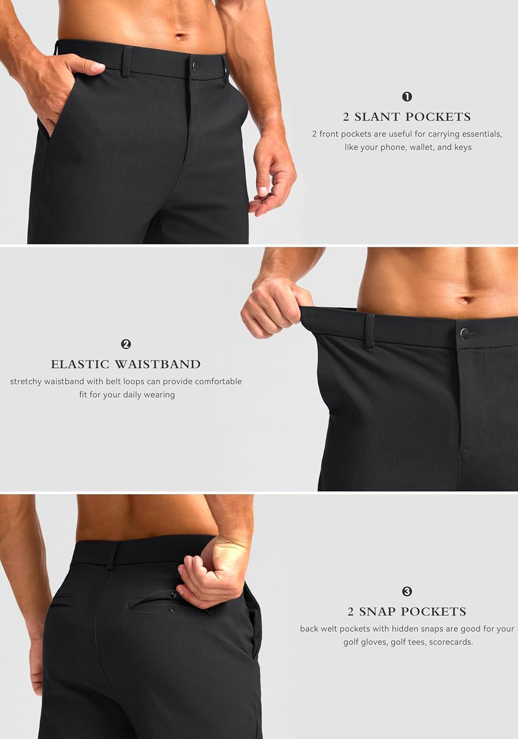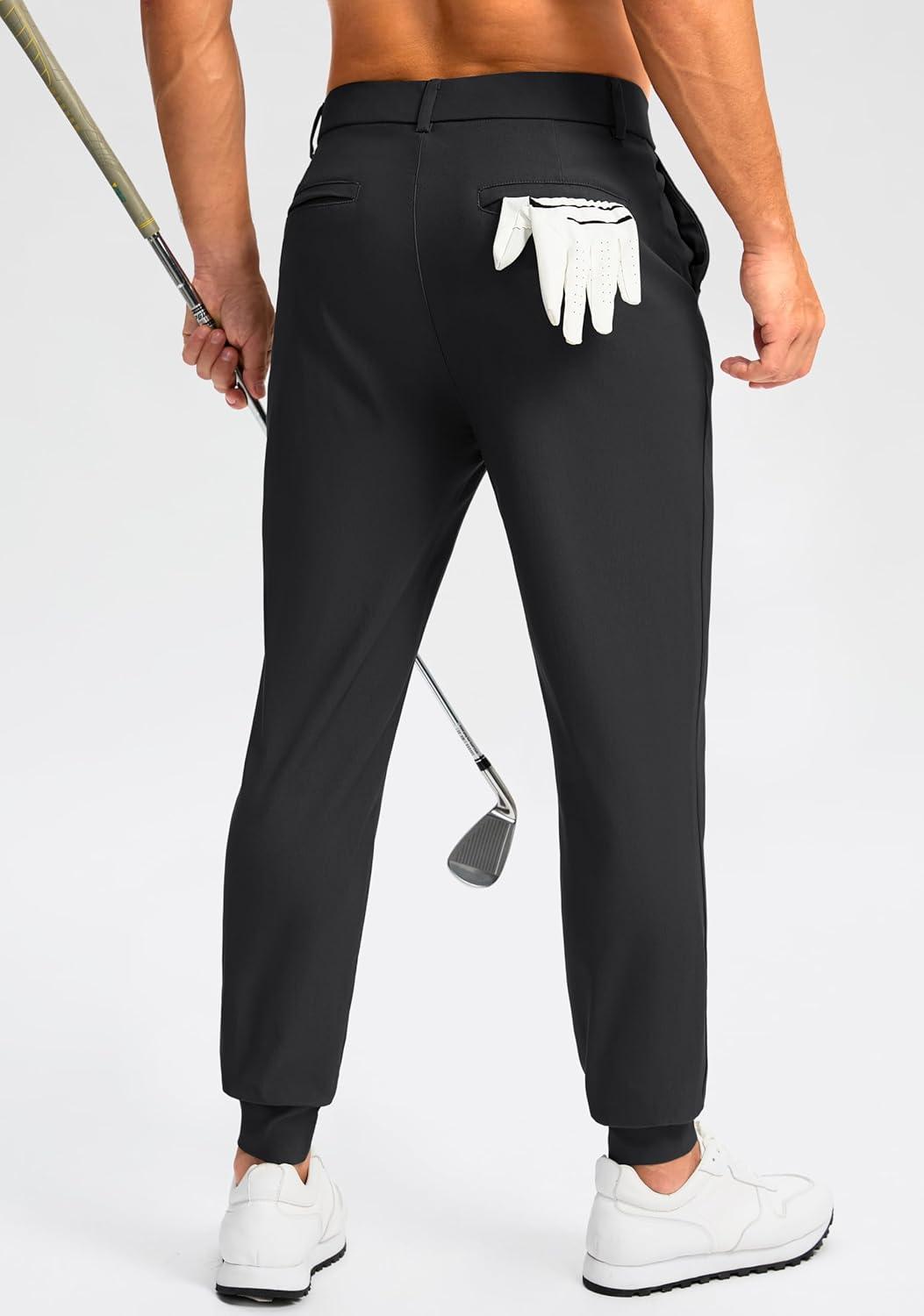 G Gradual Men’s Golf Joggers Pants 4 Pockets with Belt Loops 28″ Stretch Slim Fit Dress Joggers for Men Casual Travel(Black)
