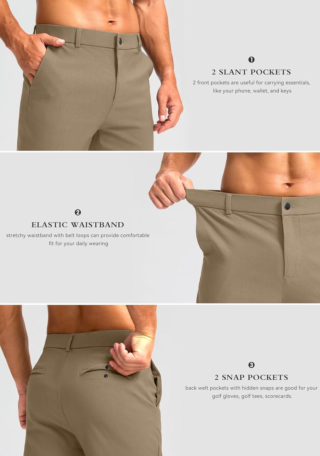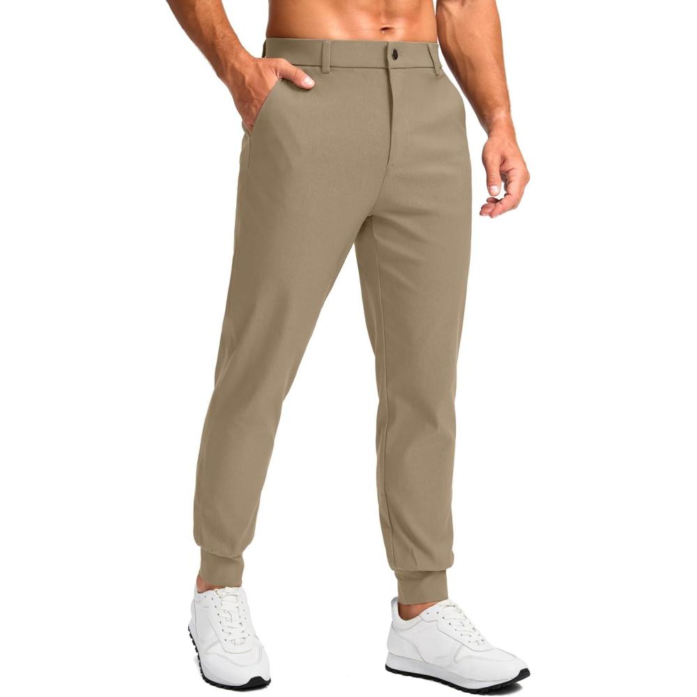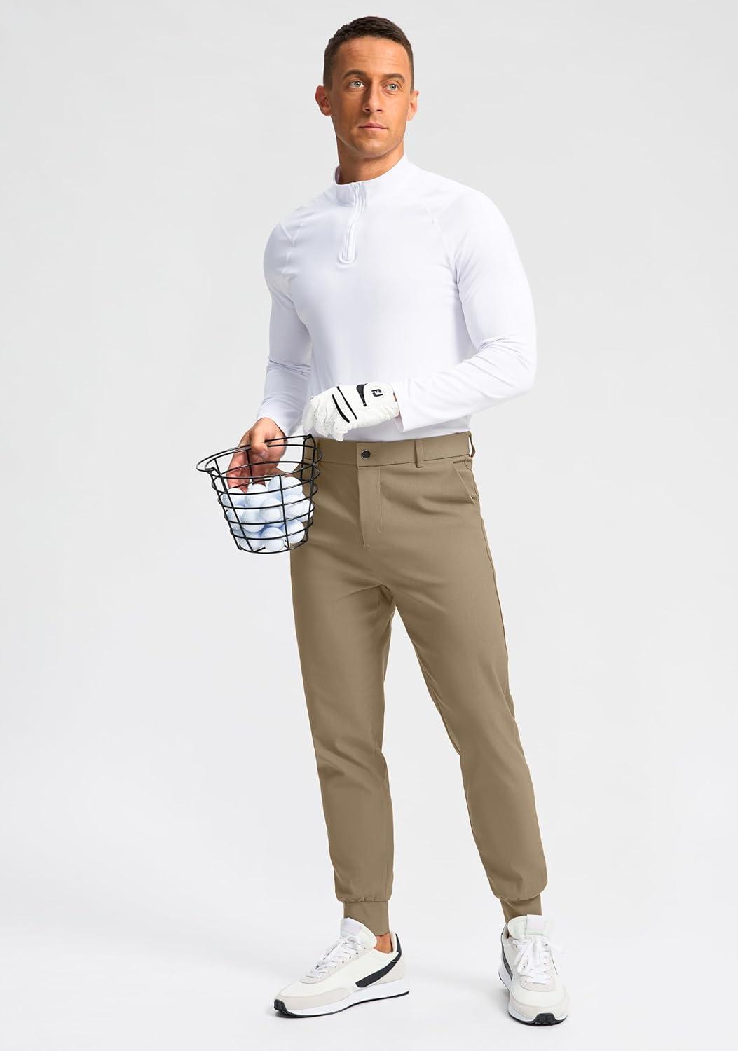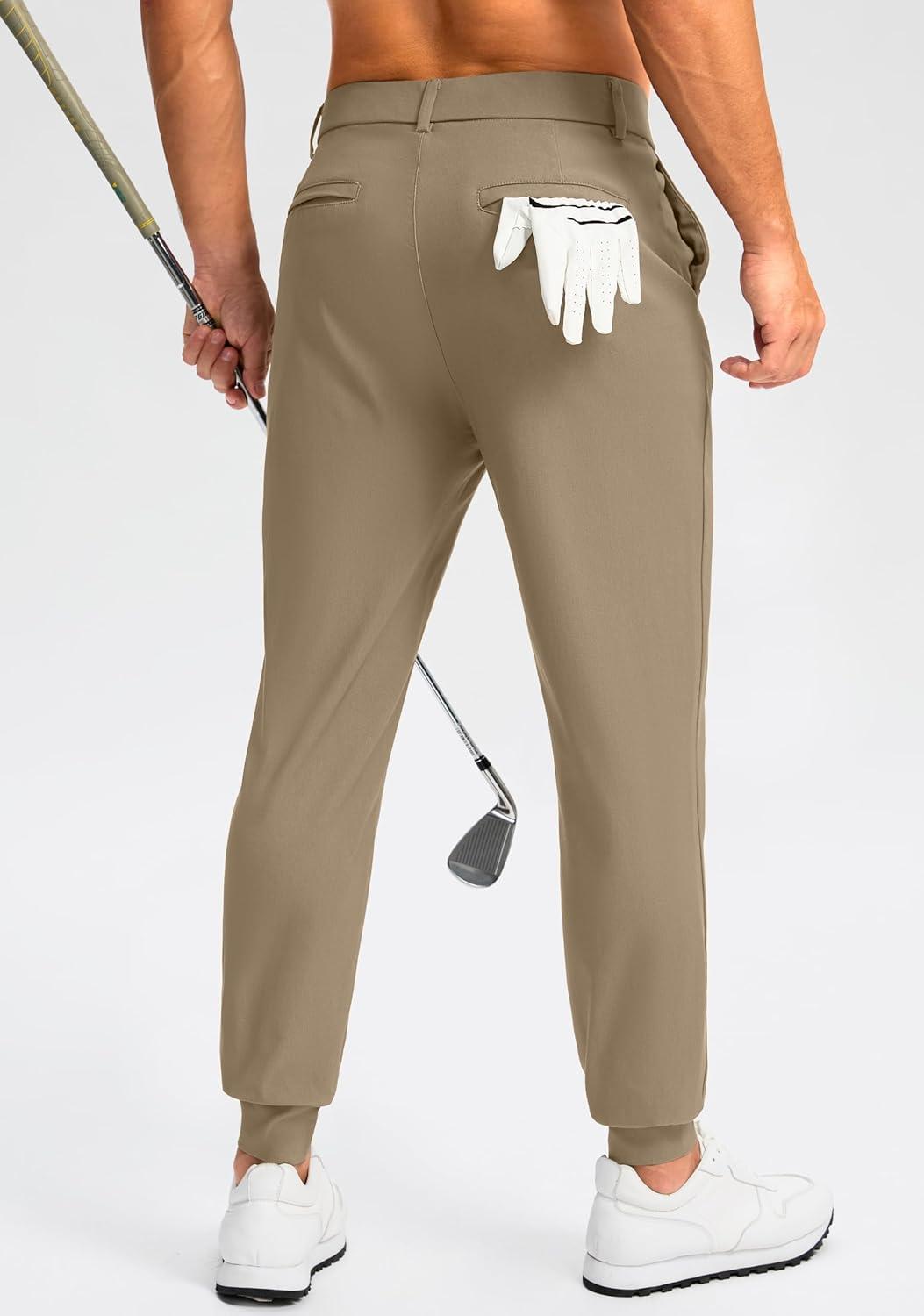 G Gradual Men’s Golf Joggers Pants 4 Pockets with Belt Loops 28″ Stretch Slim Fit Dress Joggers for Men Casual Travel(Khaki)