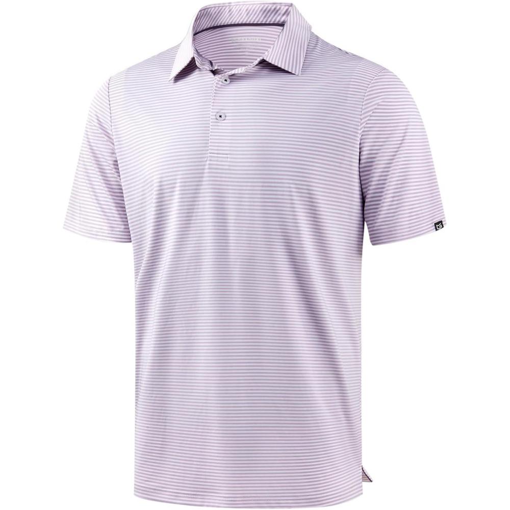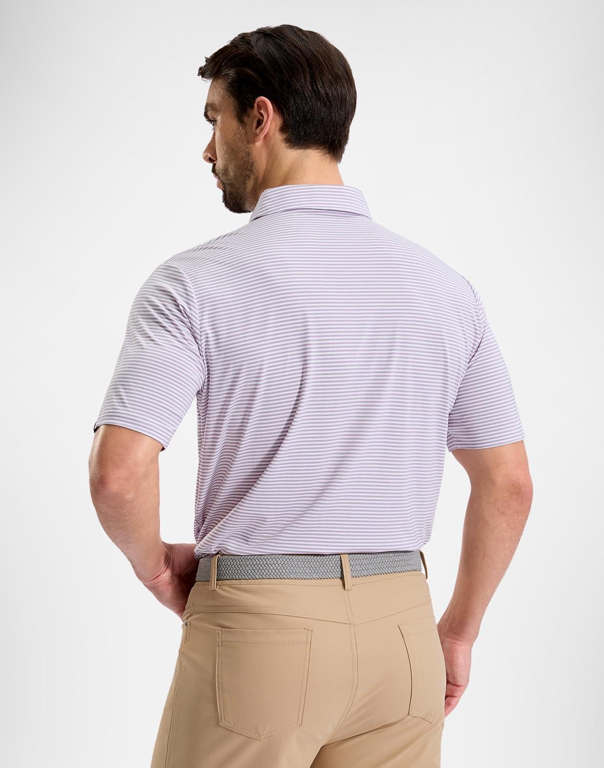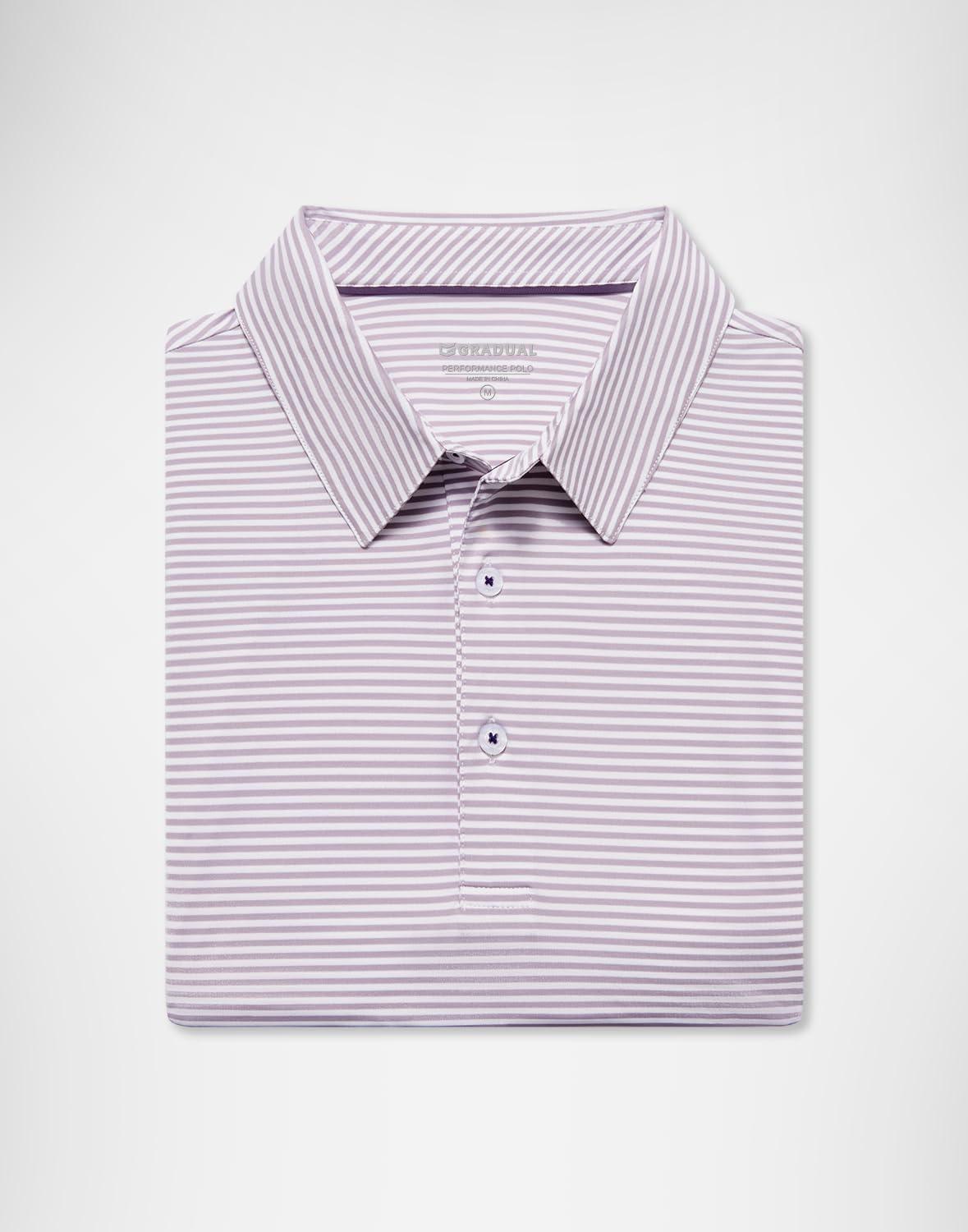 G Gradual Mens Golf Shirt Dry Fit Moisture Wicking Perfomance Short Sleeve Striped Polo Shirts for Men Dressy Casual(Lavender Stripe)