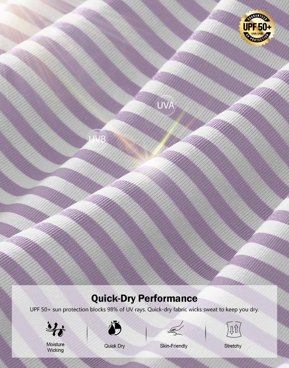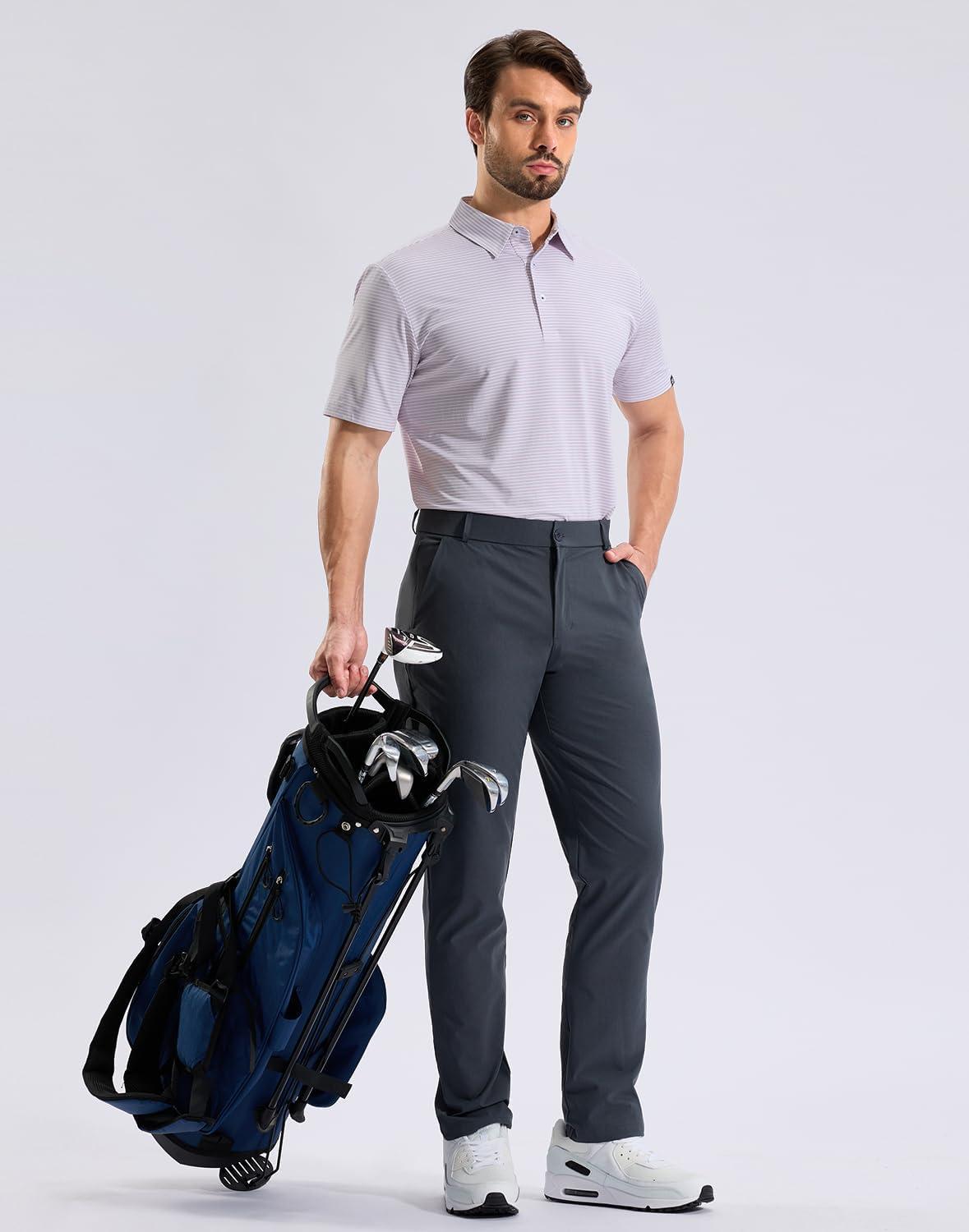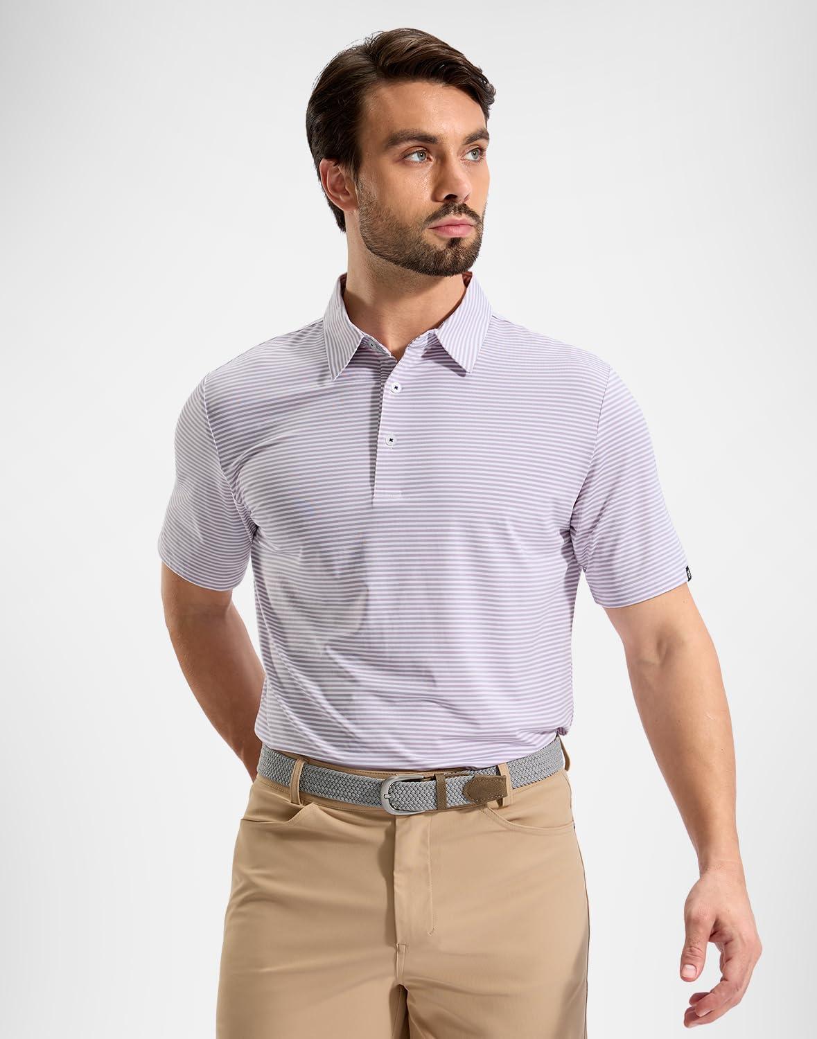 G Gradual Mens Golf Shirt Dry Fit Moisture Wicking Perfomance Short Sleeve Striped Polo Shirts for Men Dressy Casual(Lavender Stripe)