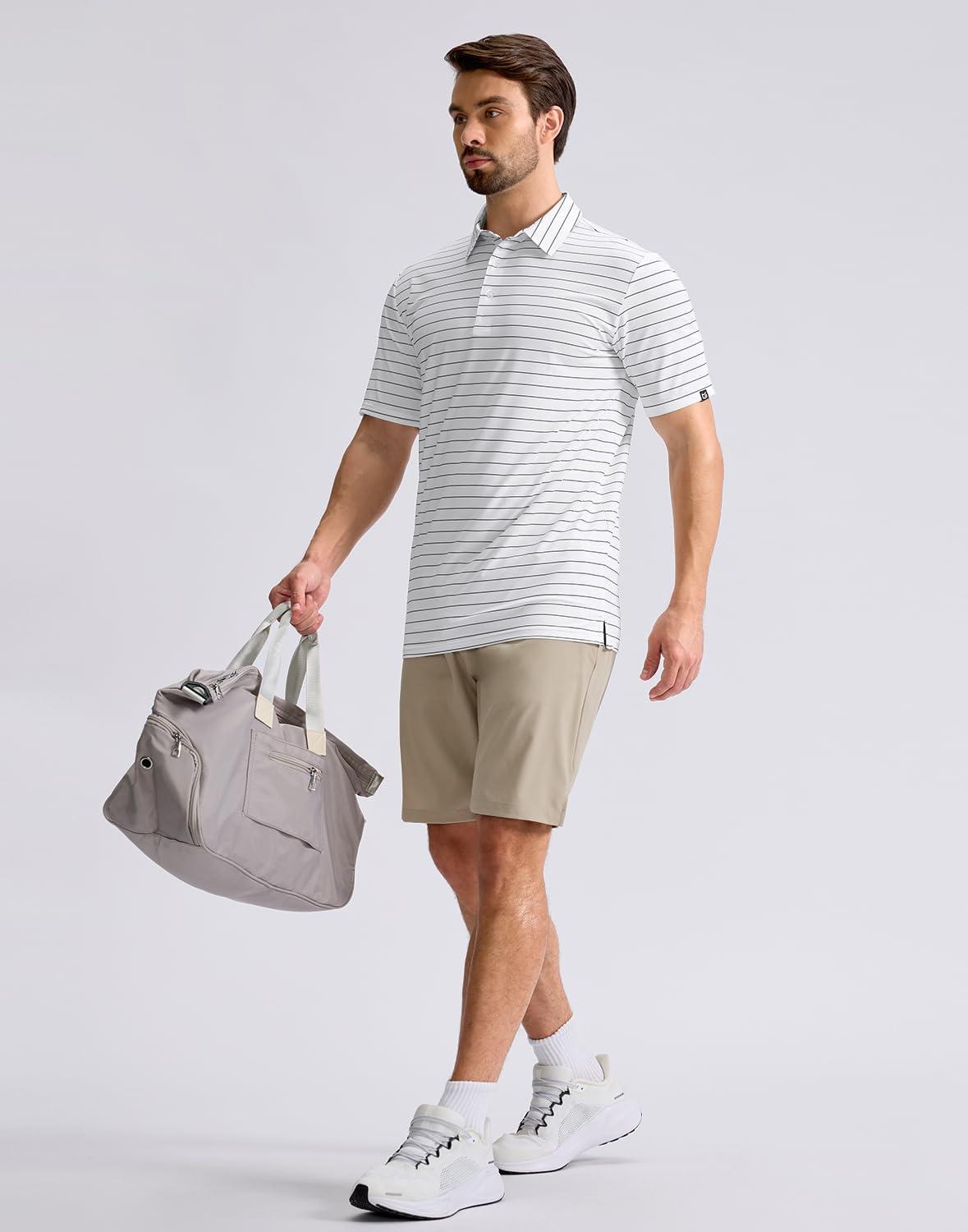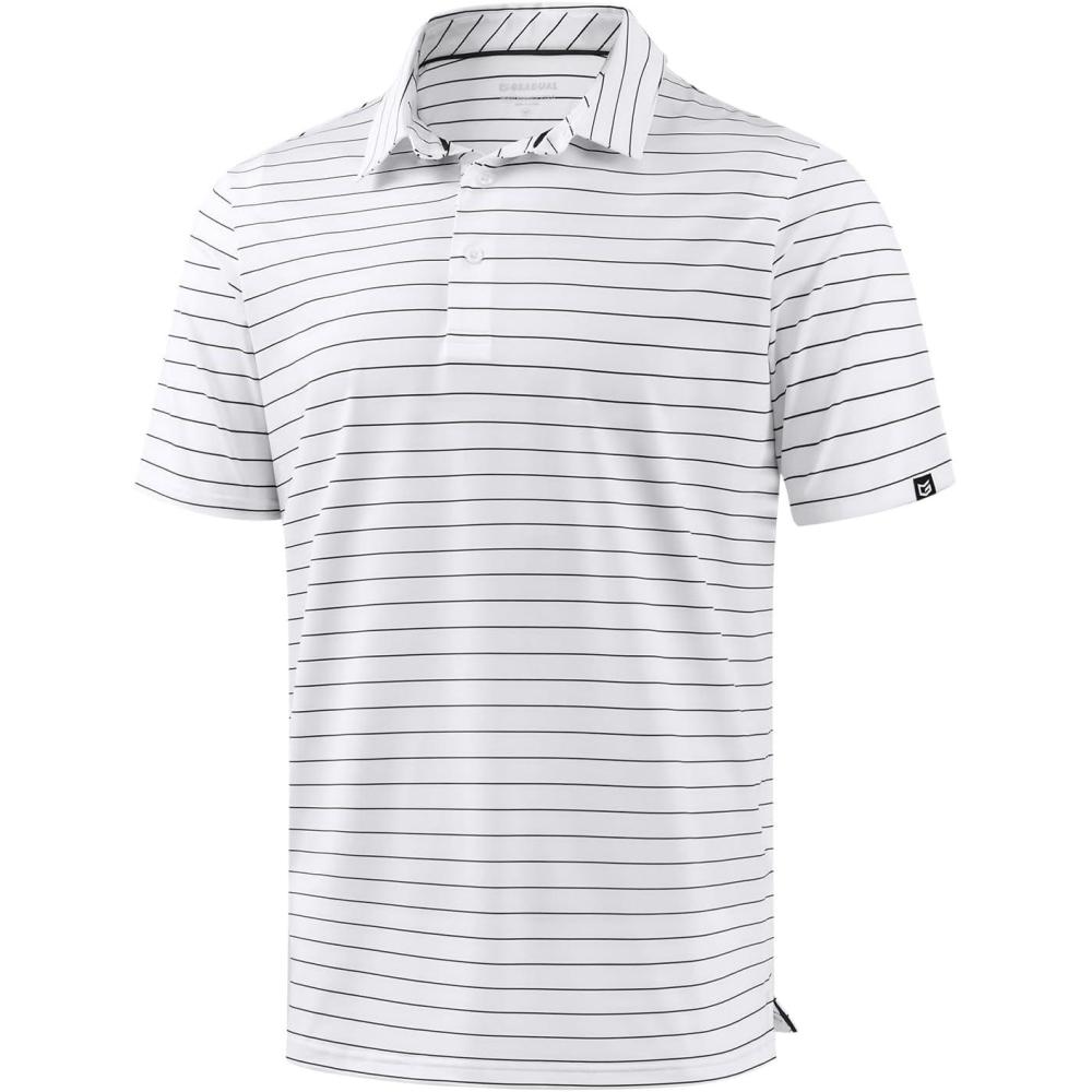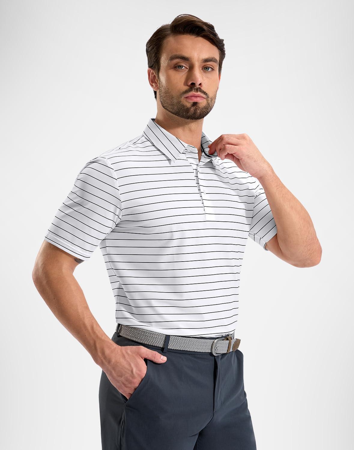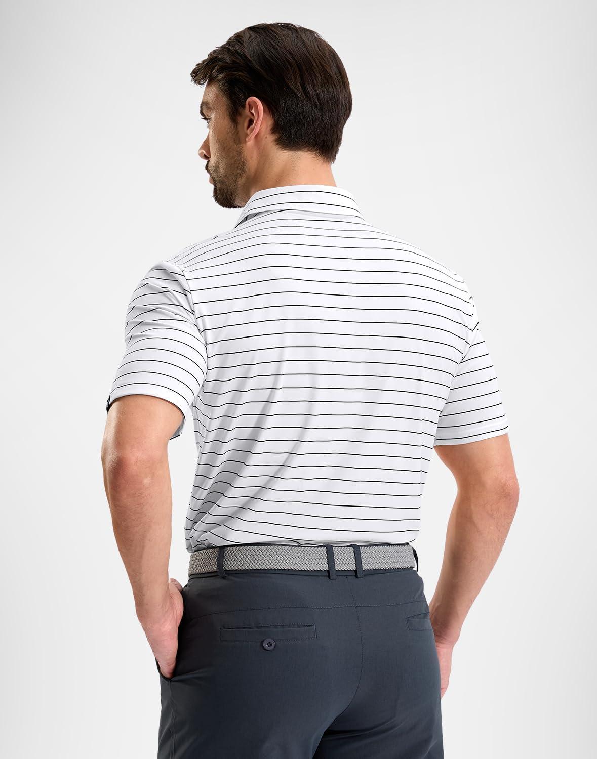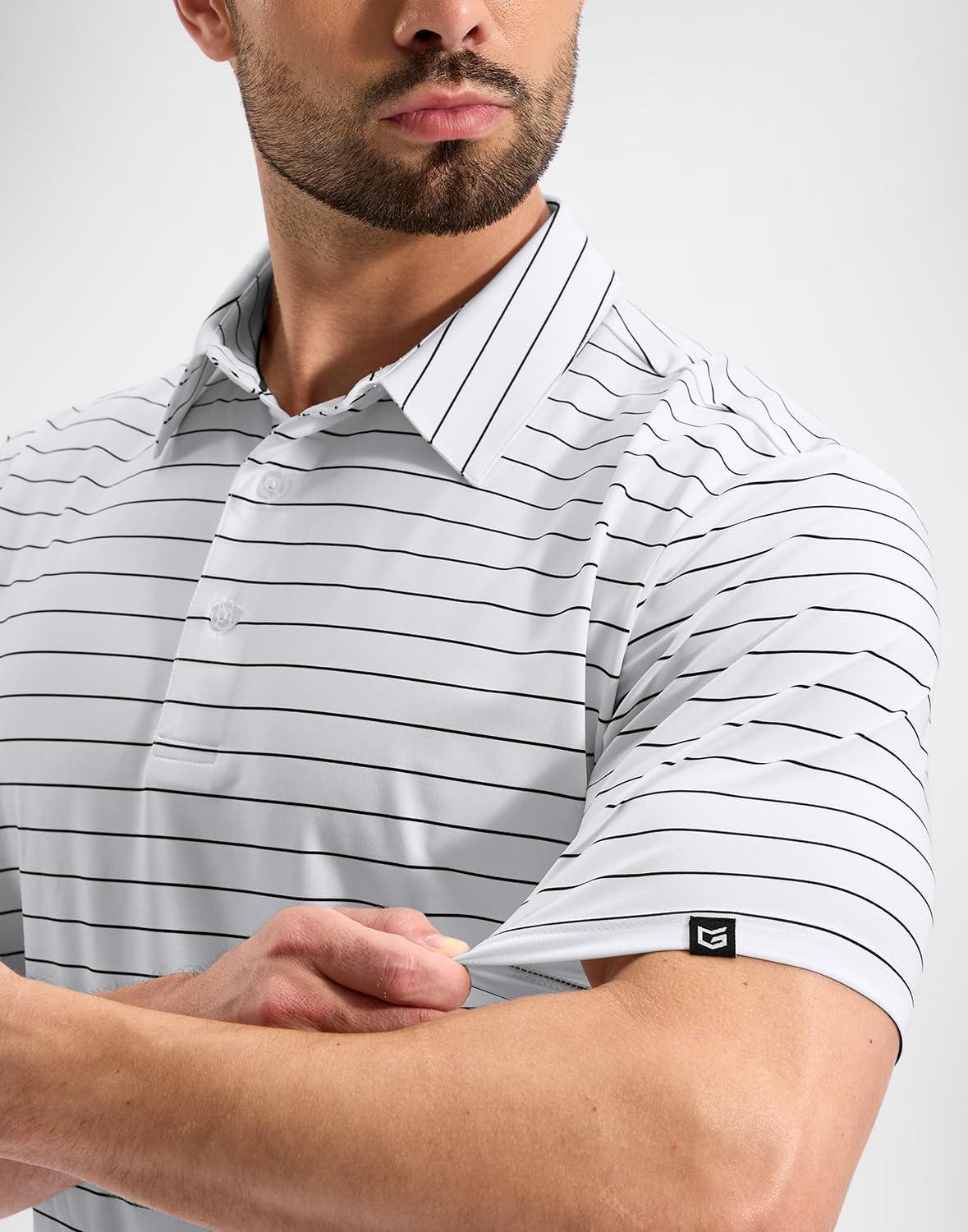 G Gradual Mens Golf Shirt Dry Fit Moisture Wicking Perfomance Short Sleeve Striped Polo Shirts for Men Dressy Casual(Wide White Stripe)