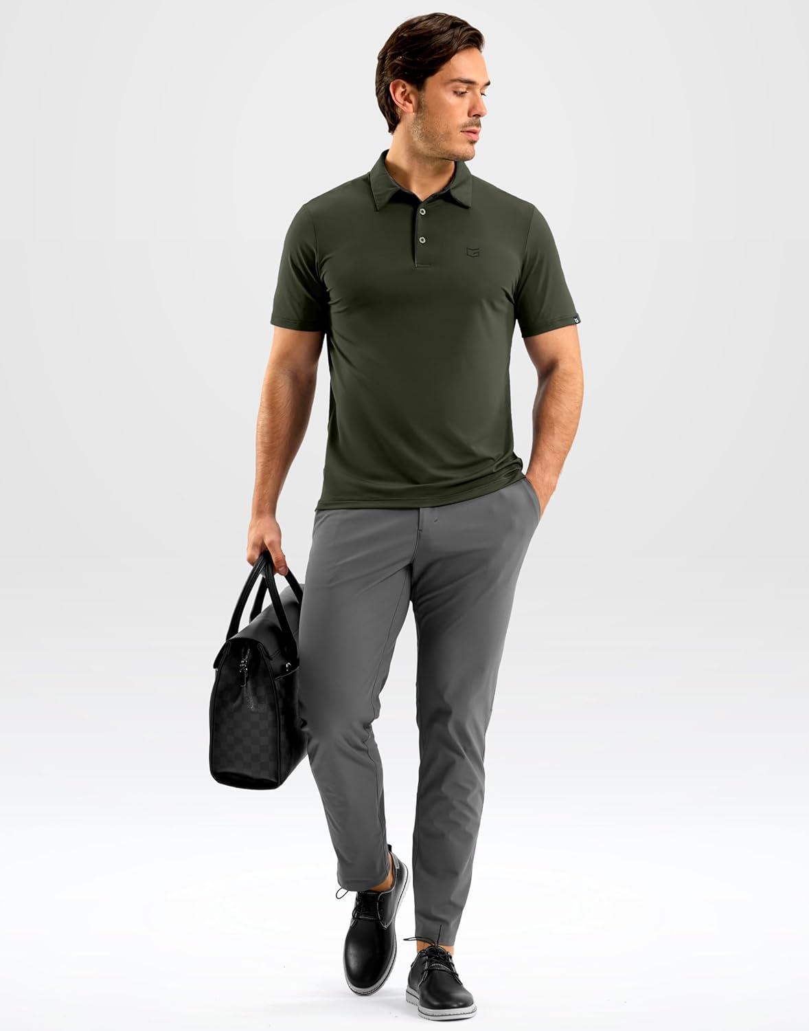 G Gradual Mens Golf Shirt Dry Fit Short Sleeve Polos Moisture Wicking Performance Polo Shirts for Men Athletic Tennis Casual(Army Green)