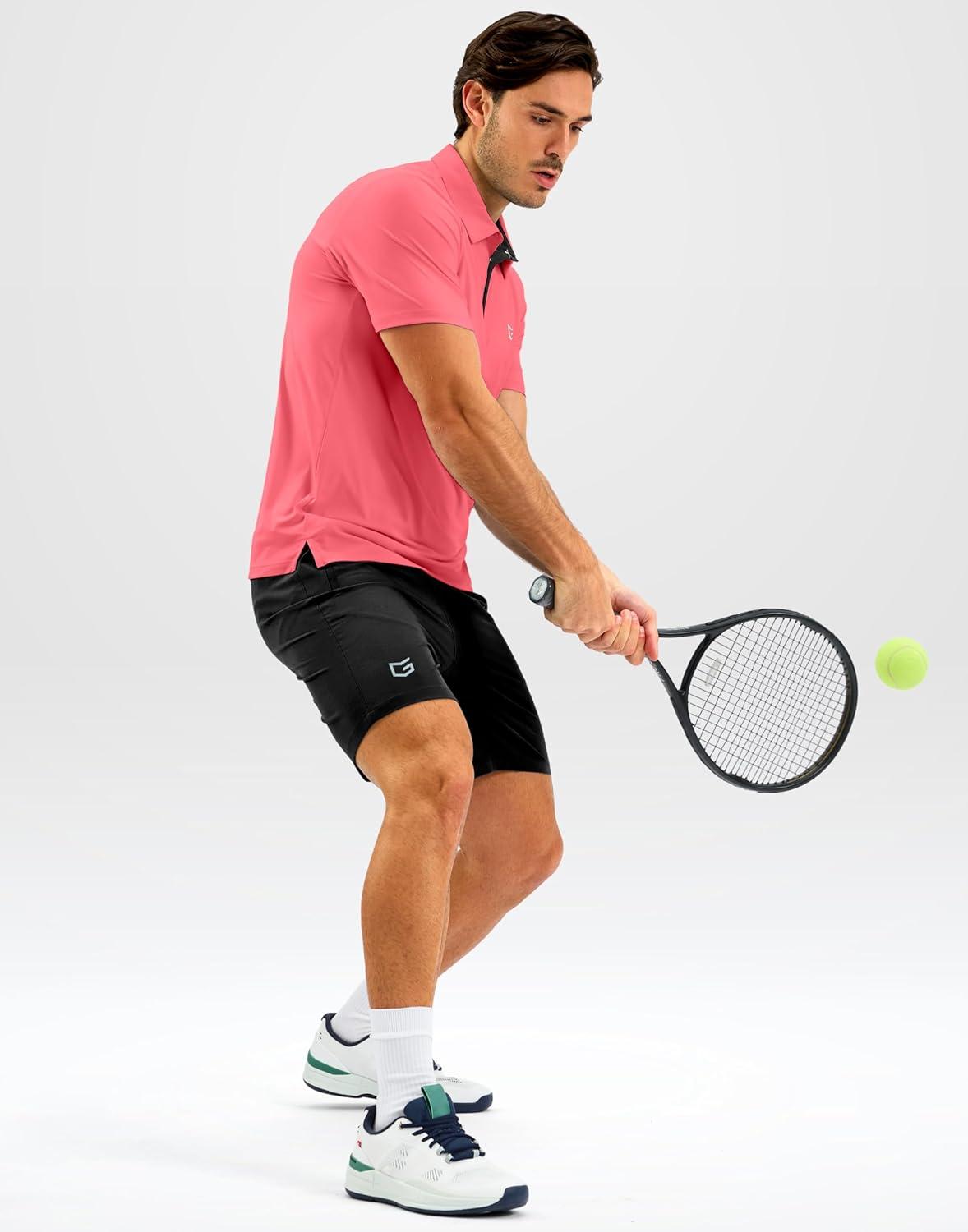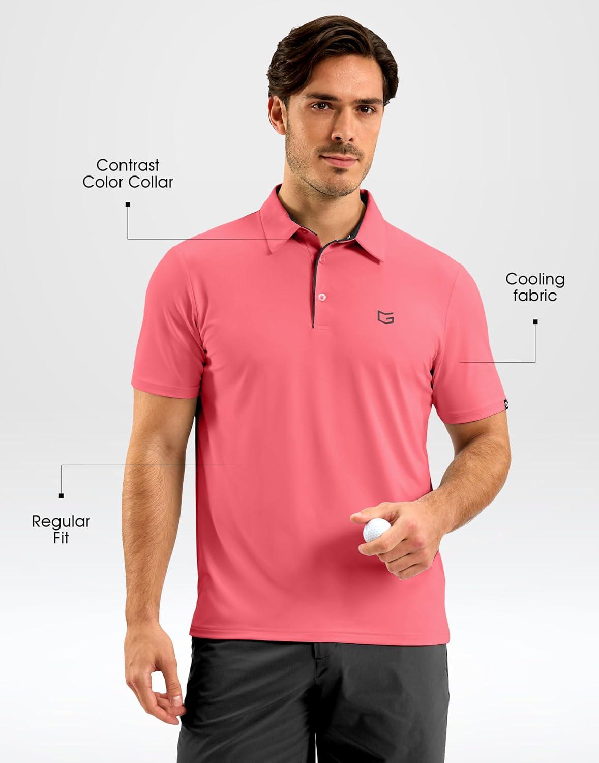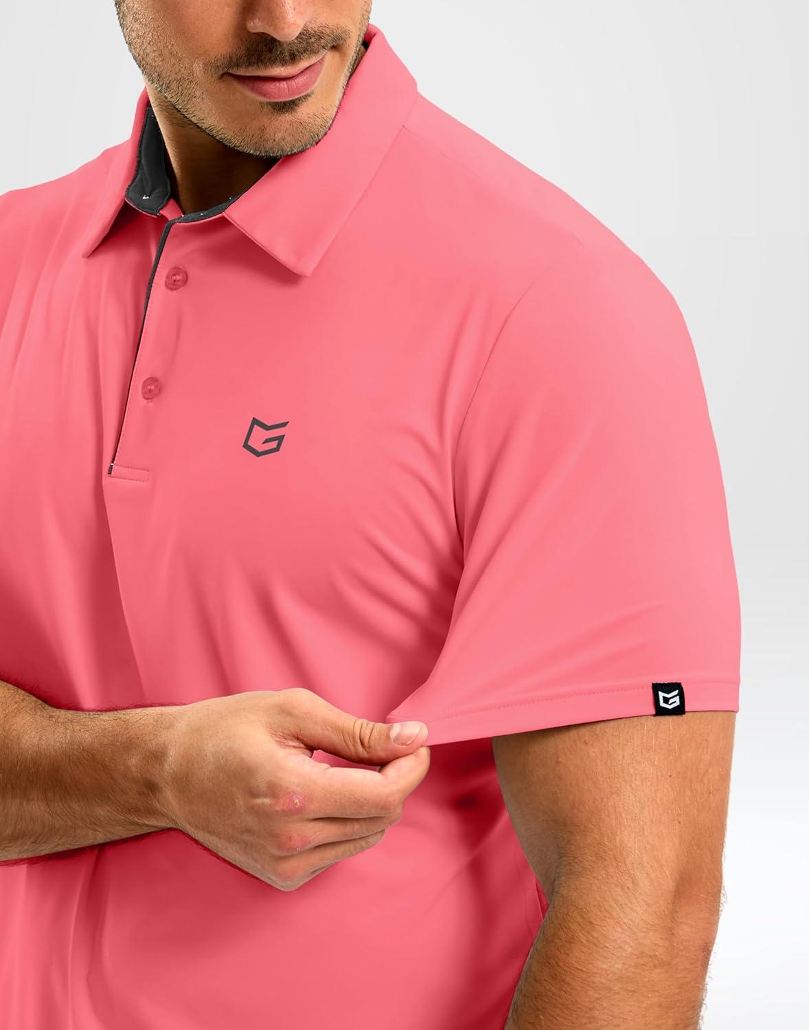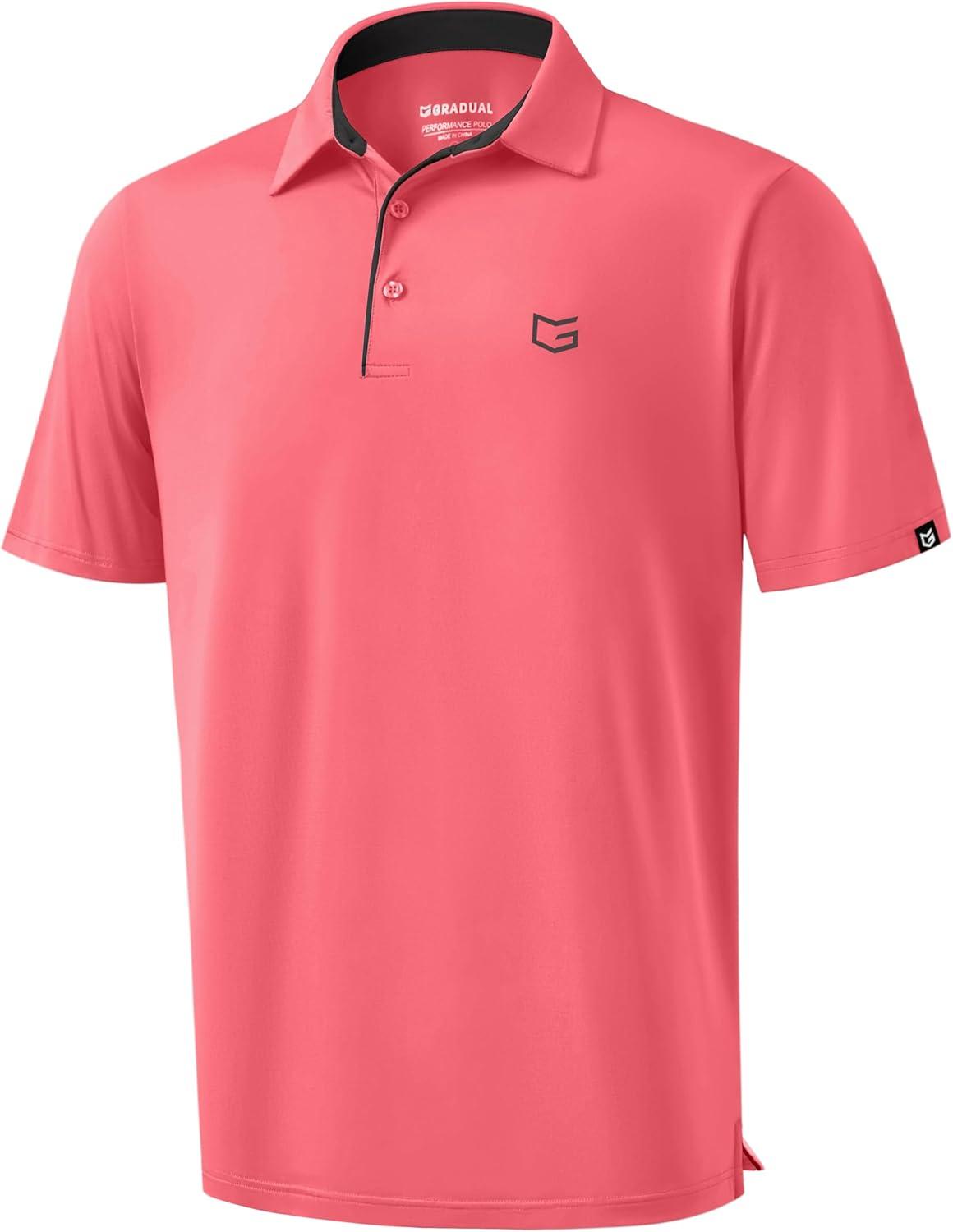 G Gradual Mens Golf Shirt Dry Fit Short Sleeve Polos Moisture Wicking Performance Polo Shirts for Men Athletic Tennis Casual(Pink)