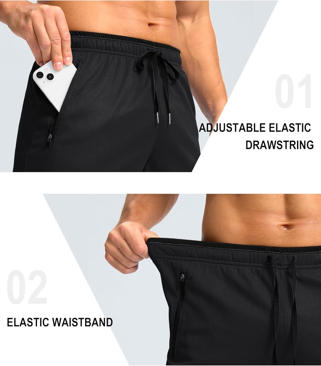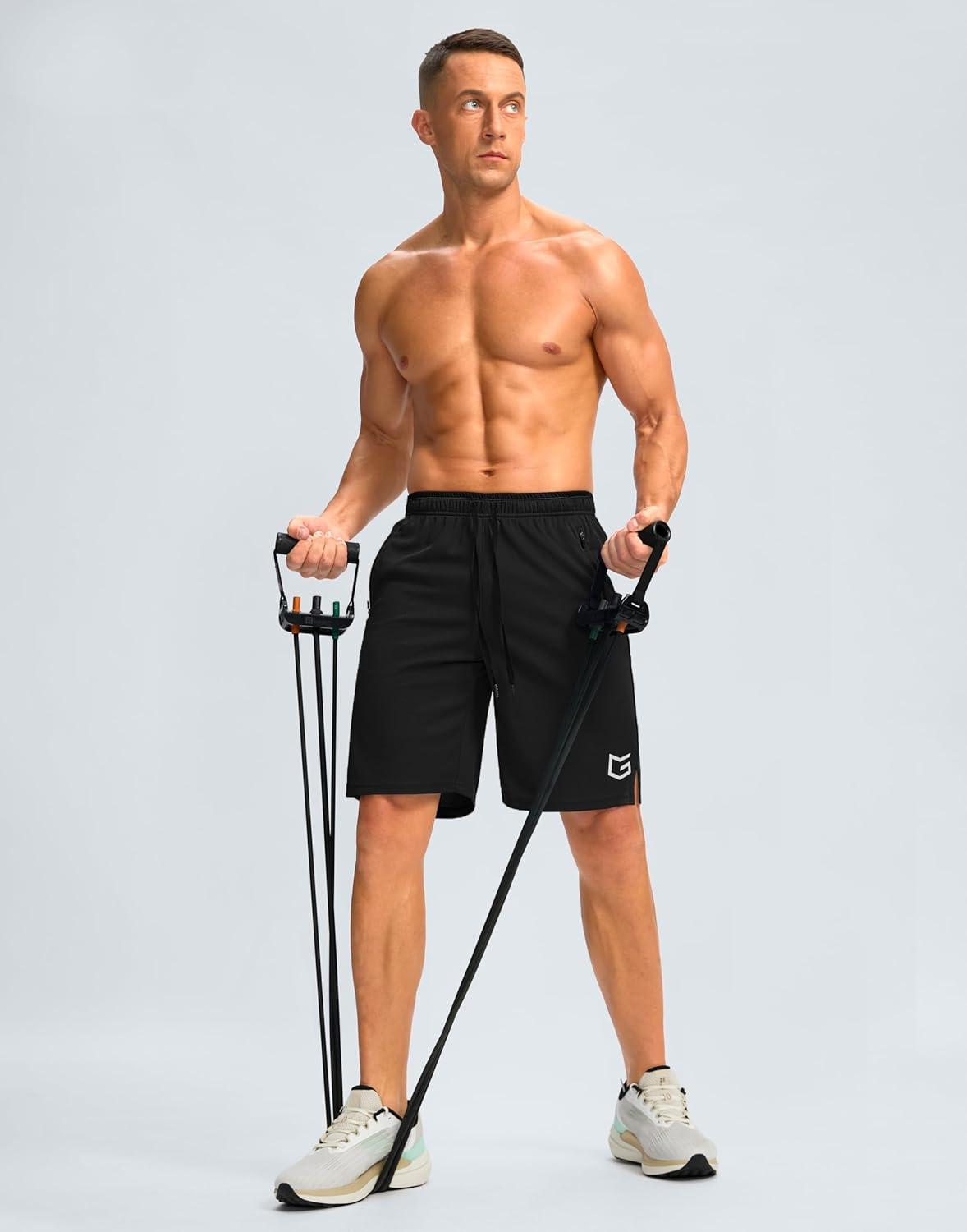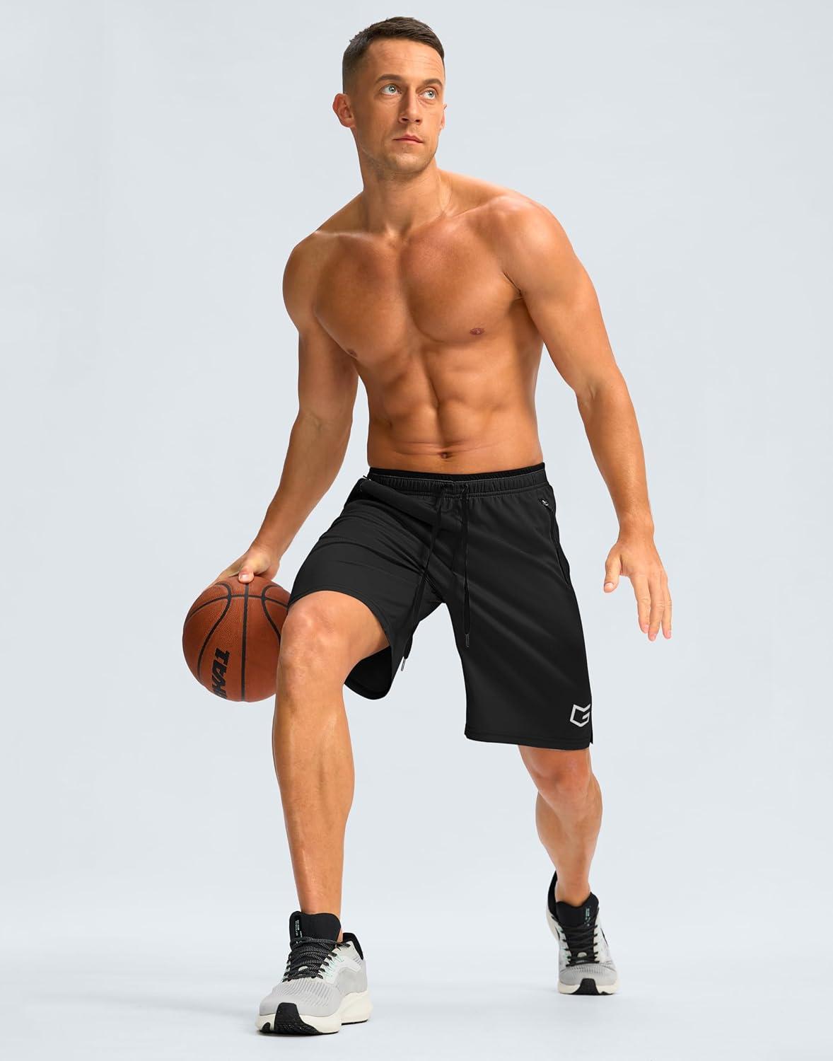 G Gradual Men’s Gym Shorts wtih Zipper Pocket 9″ Athletic Basketball Mesh Shorts for Men Workout Quick Dry Lightiweight(Black)
