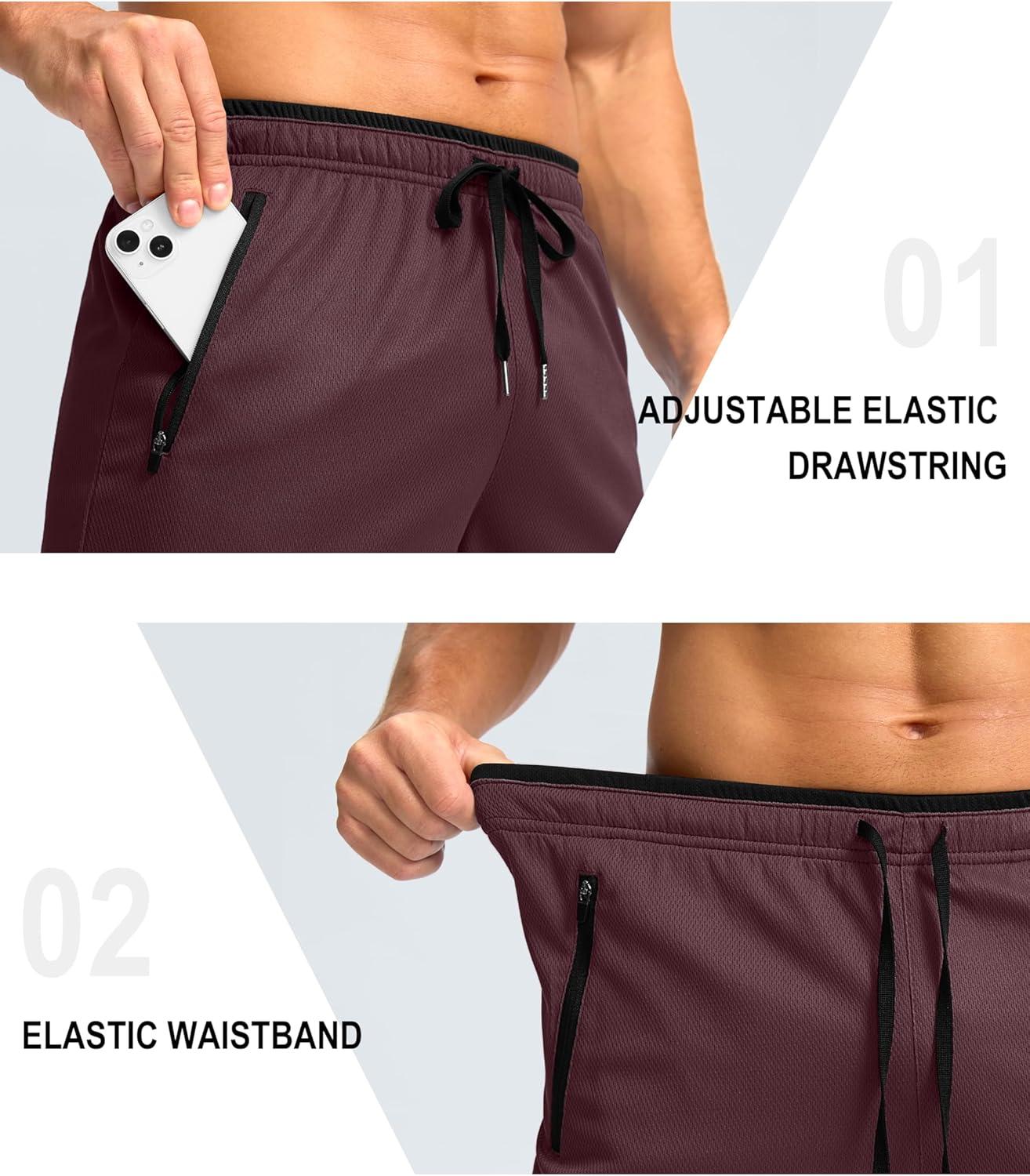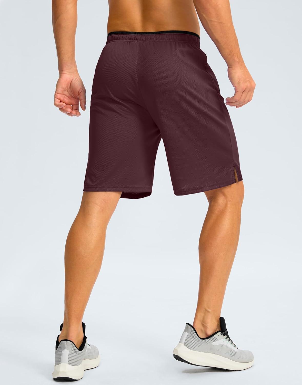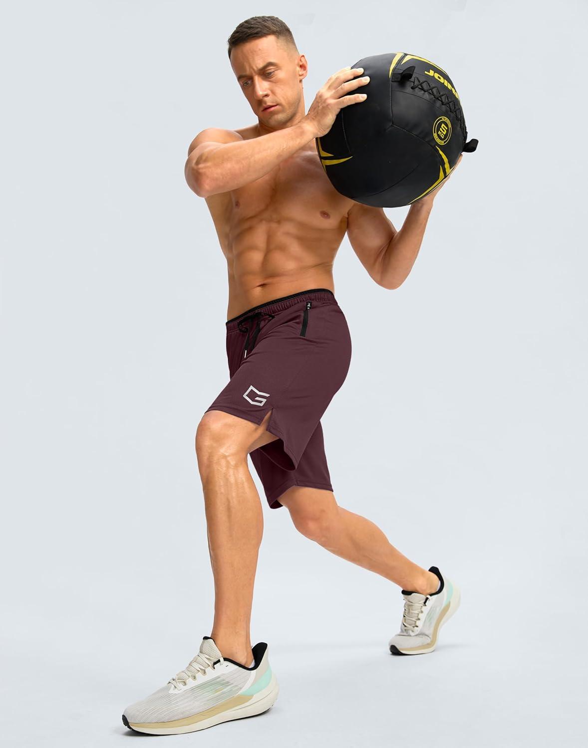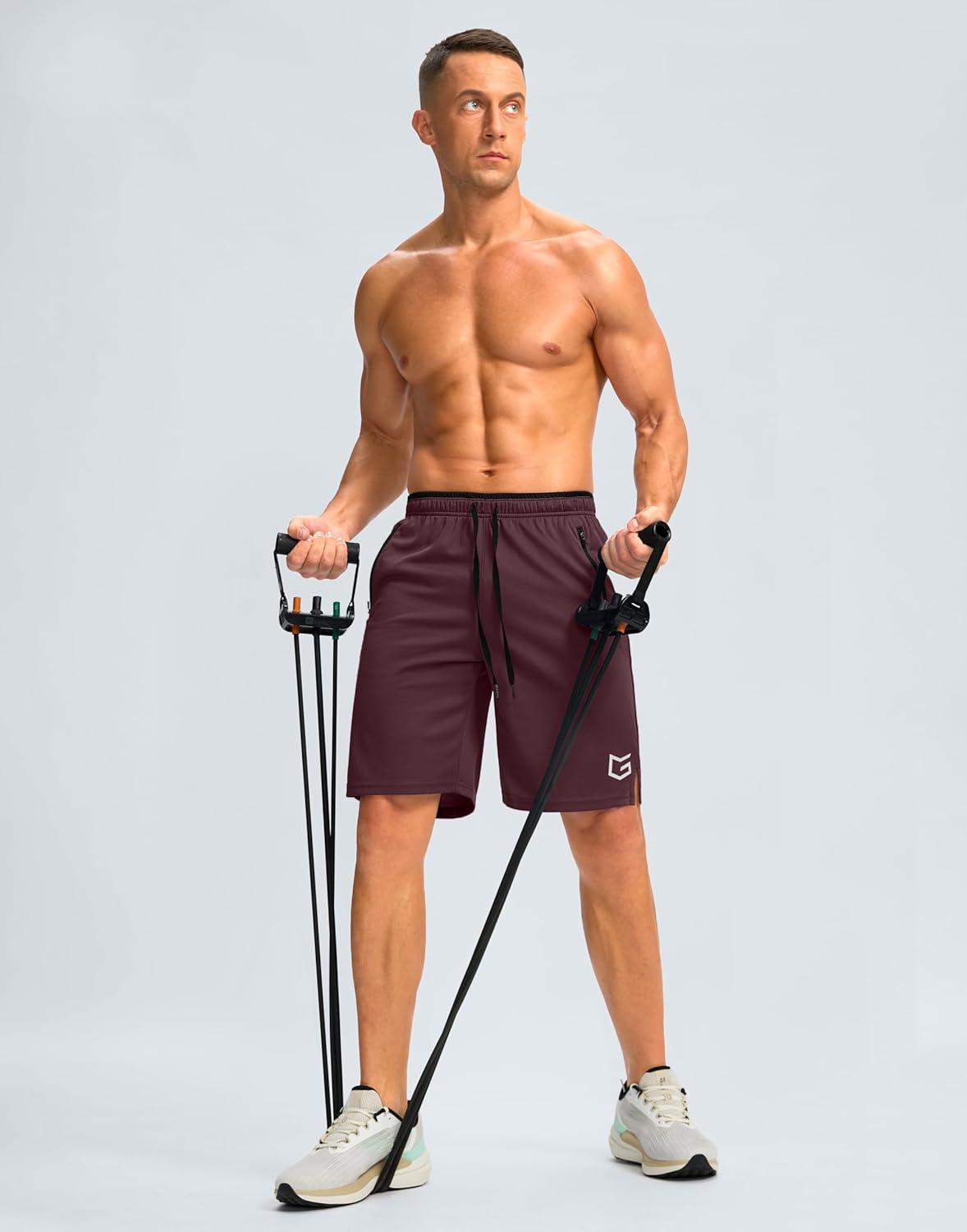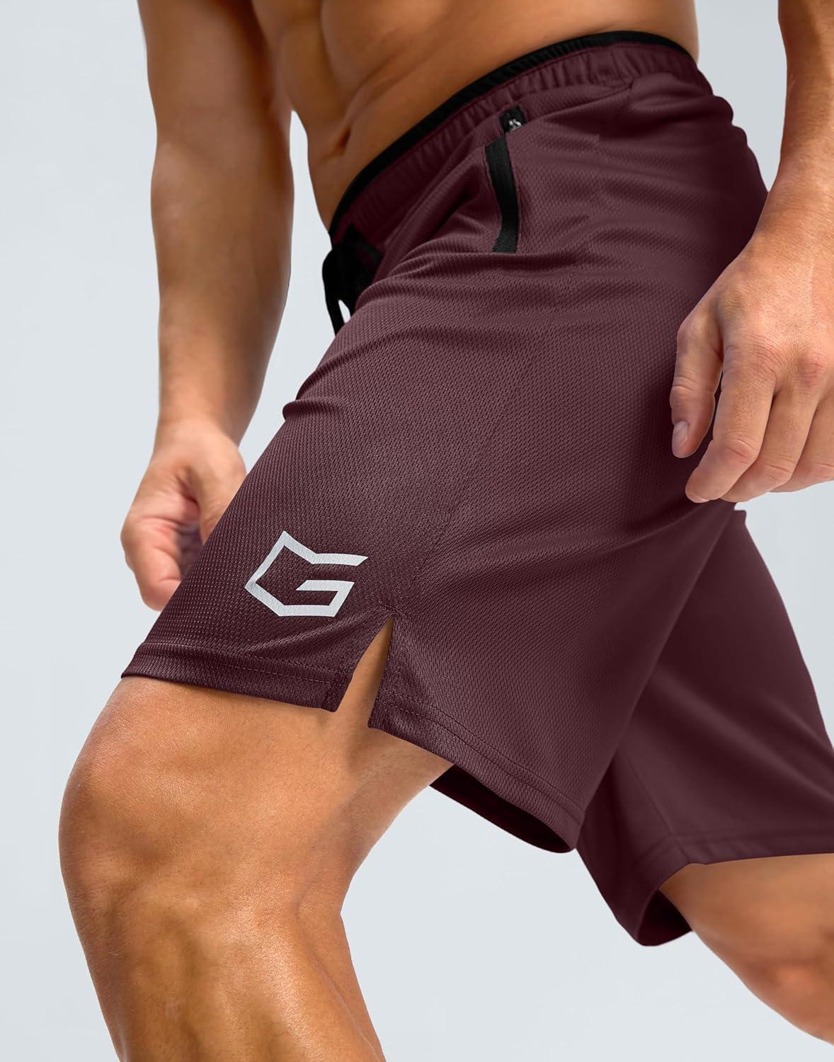 G Gradual Men’s Gym Shorts wtih Zipper Pocket 9″ Athletic Basketball Mesh Shorts for Men Workout Quick Dry Lightiweight(Cabernet Red)