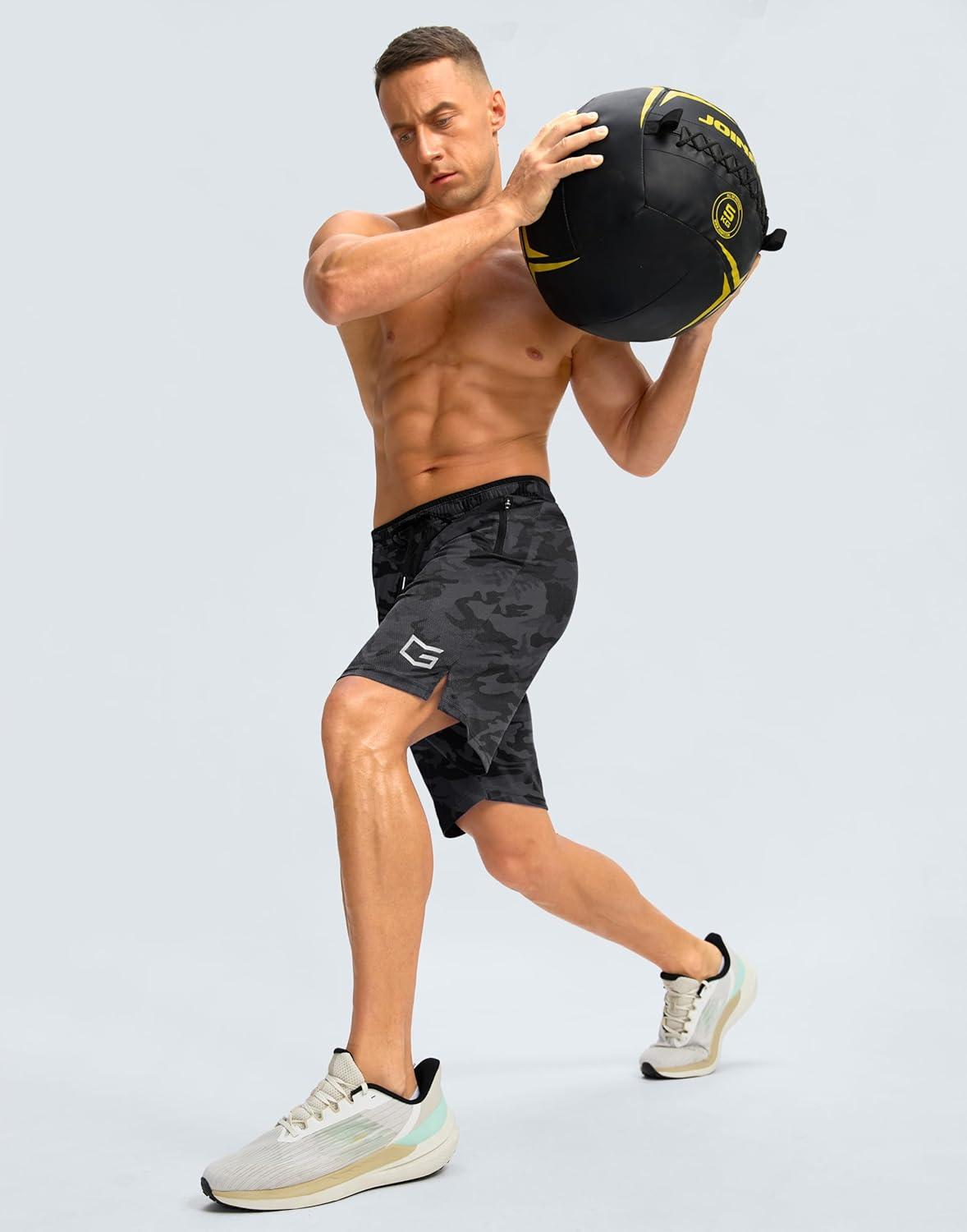 G Gradual Men's Gym Shorts wtih Zipper Pocket 9" Athletic Basketball Mesh Shorts for Men Workout Quick Dry Lightiweight(Grey Camo)