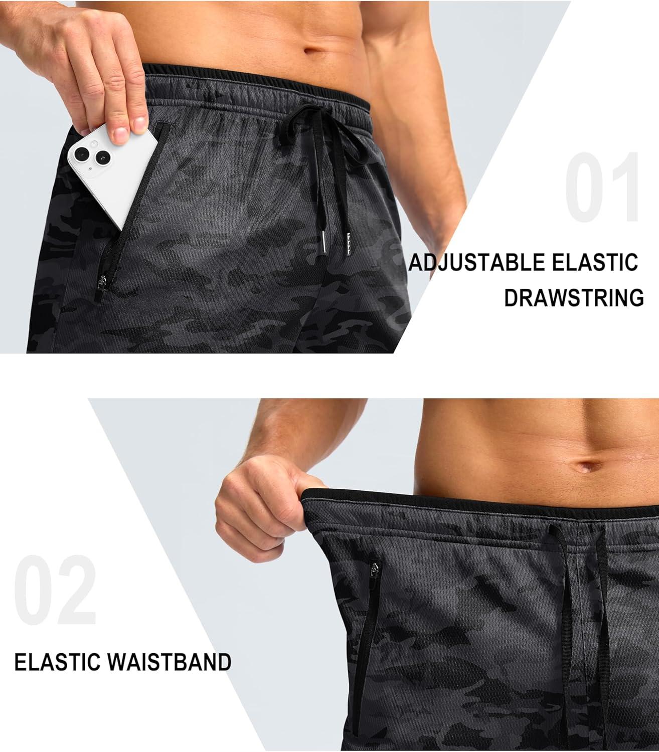 imageG Gradual Mens Gym Shorts wtih Zipper Pocket 9quot Athletic Basketball Mesh Shorts for Men Workout Quick Dry LightiweightGrey Camo