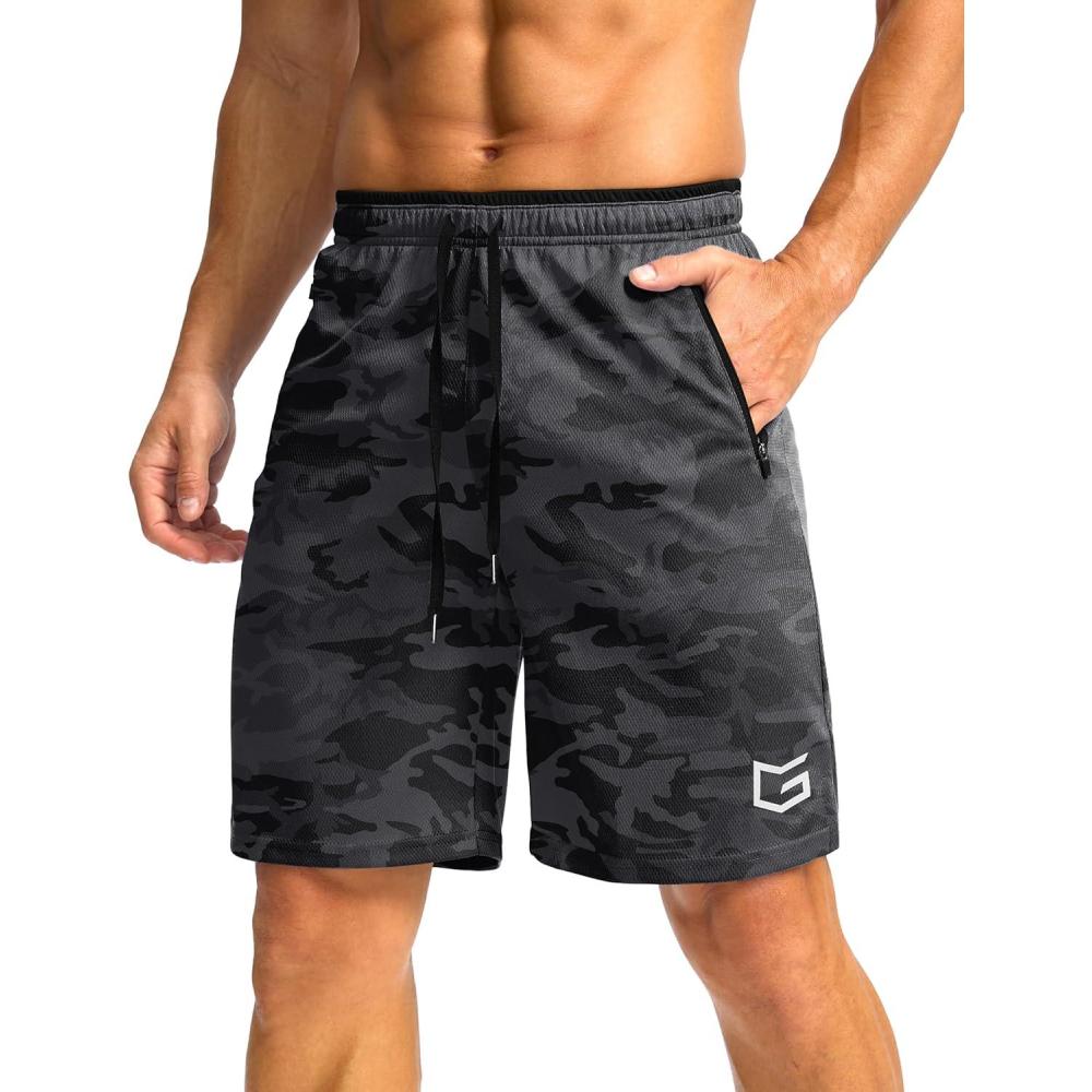 G Gradual Men’s Gym Shorts wtih Zipper Pocket 9″ Athletic Basketball Mesh Shorts for Men Workout Quick Dry Lightiweight(Grey Camo)
