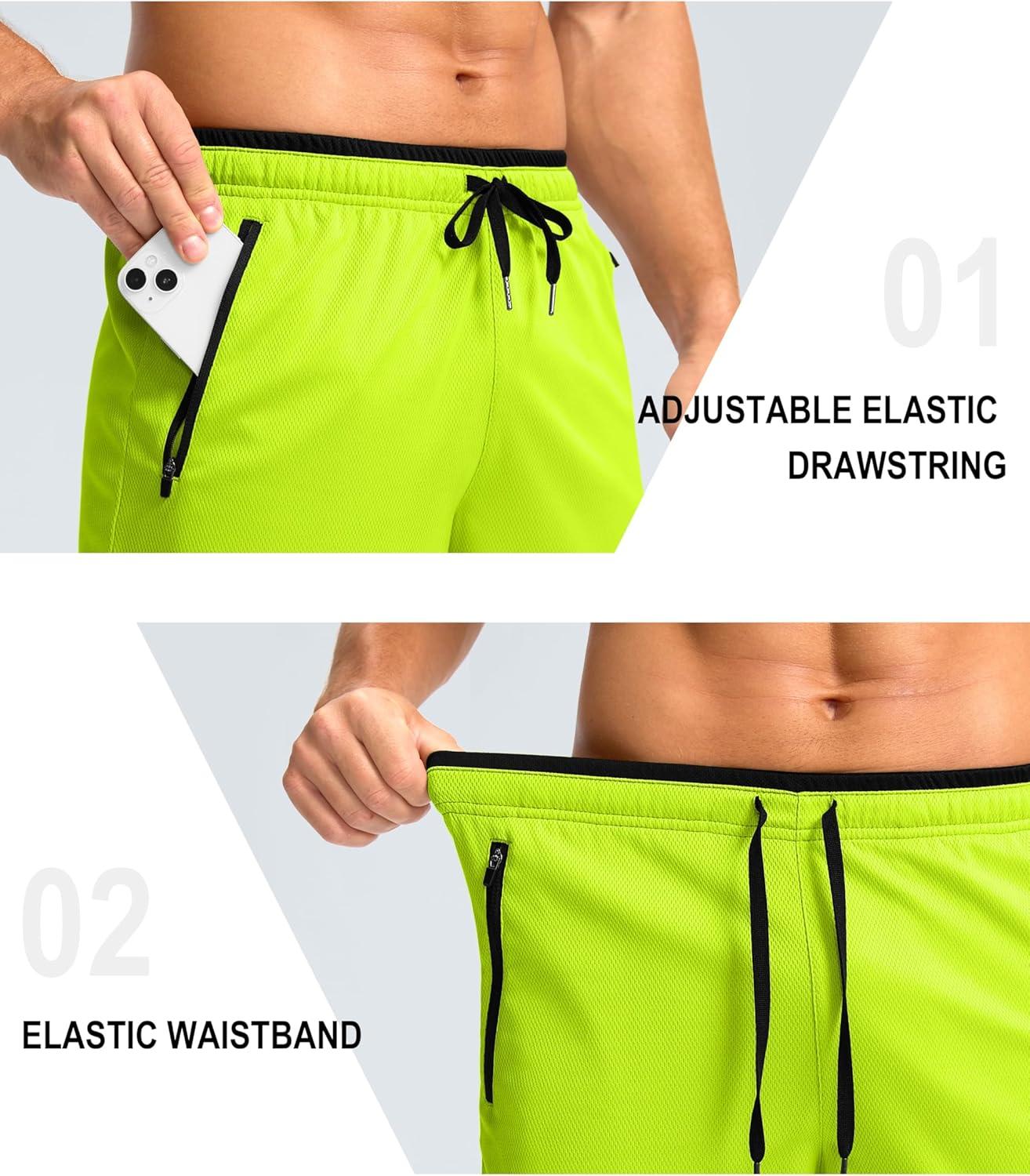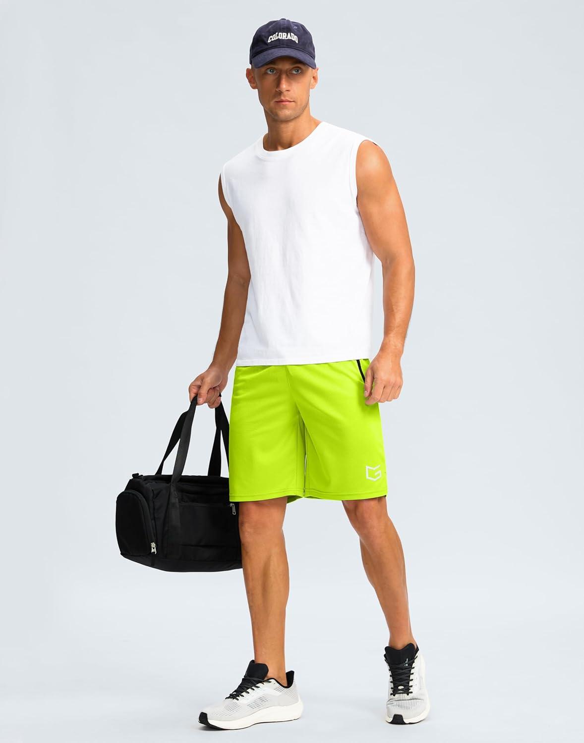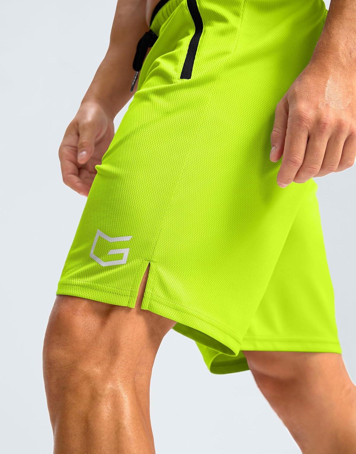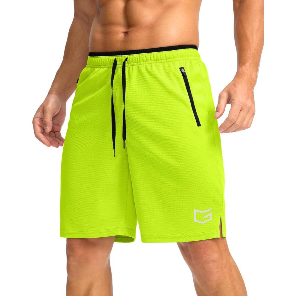 G Gradual Men’s Gym Shorts wtih Zipper Pocket 9″ Athletic Basketball Mesh Shorts for Men Workout Quick Dry Lightiweight(Highlight Yellow)