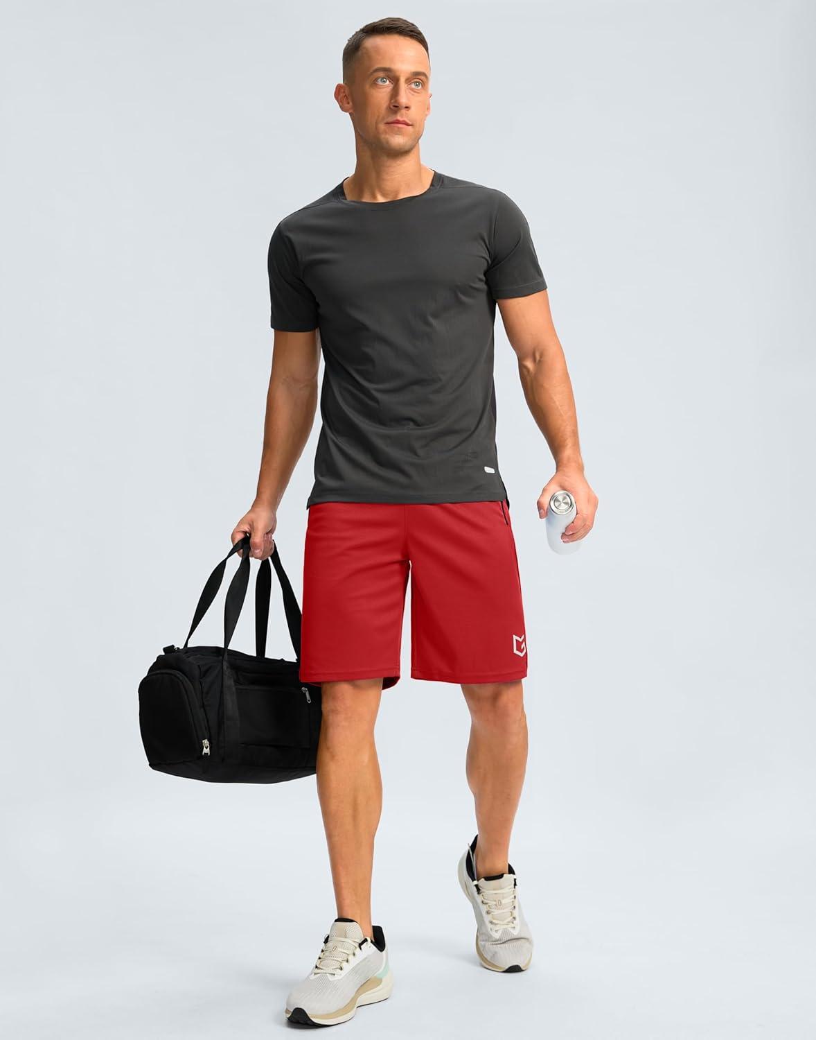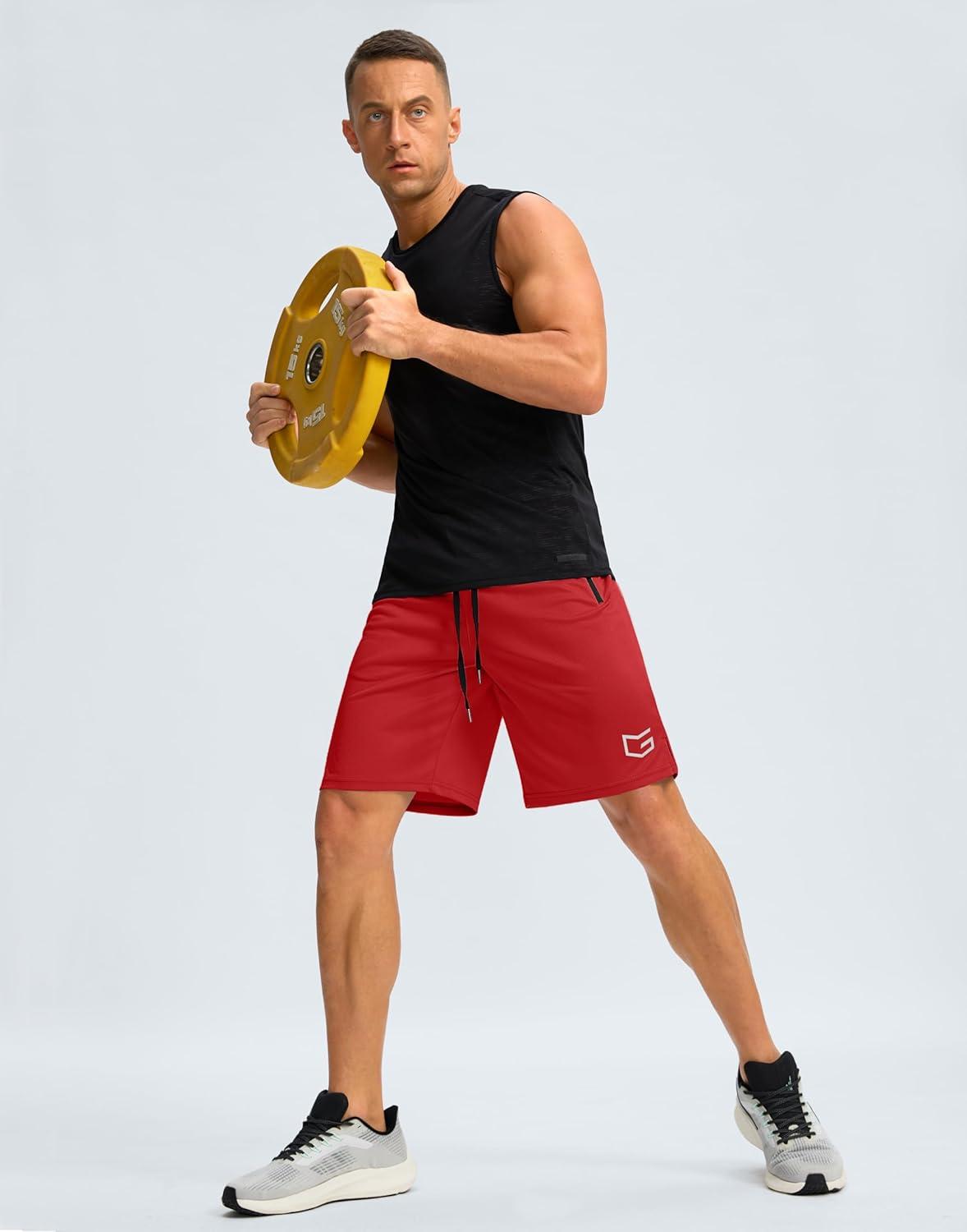 G Gradual Men’s Gym Shorts wtih Zipper Pocket 9″ Athletic Basketball Mesh Shorts for Men Workout Quick Dry Lightiweight(Red)