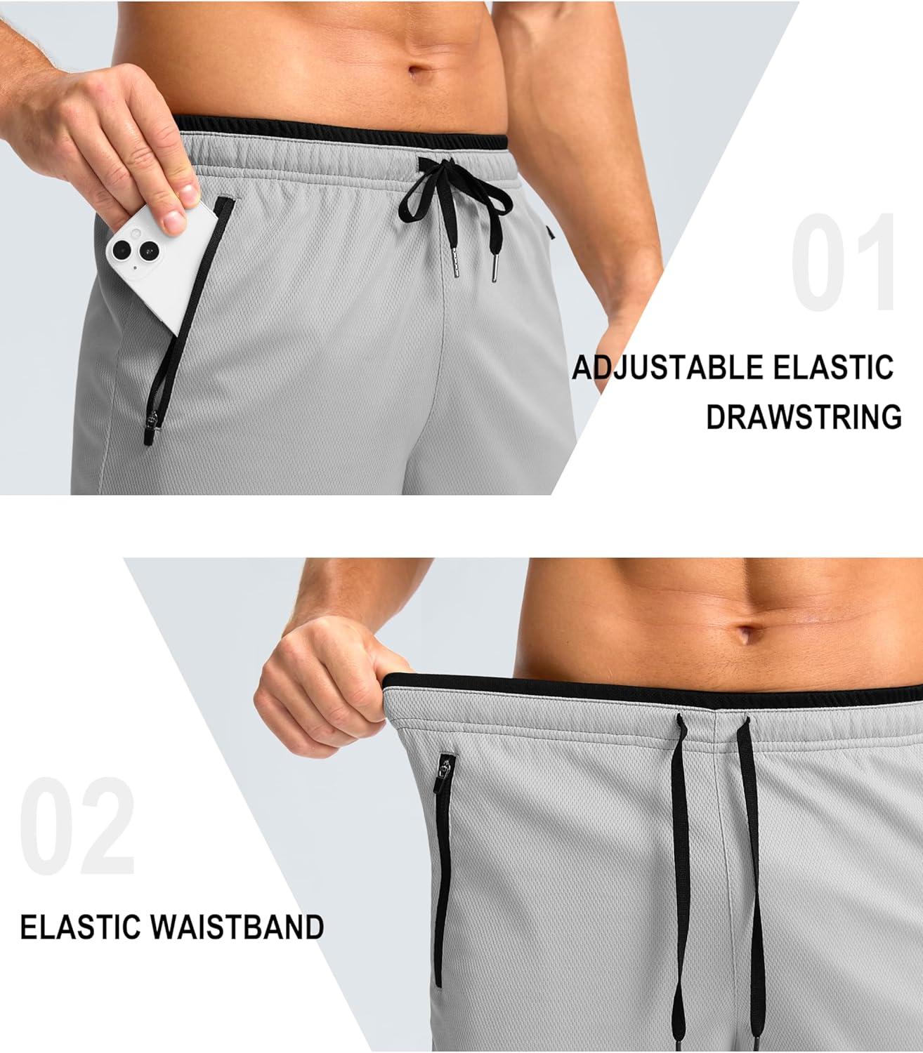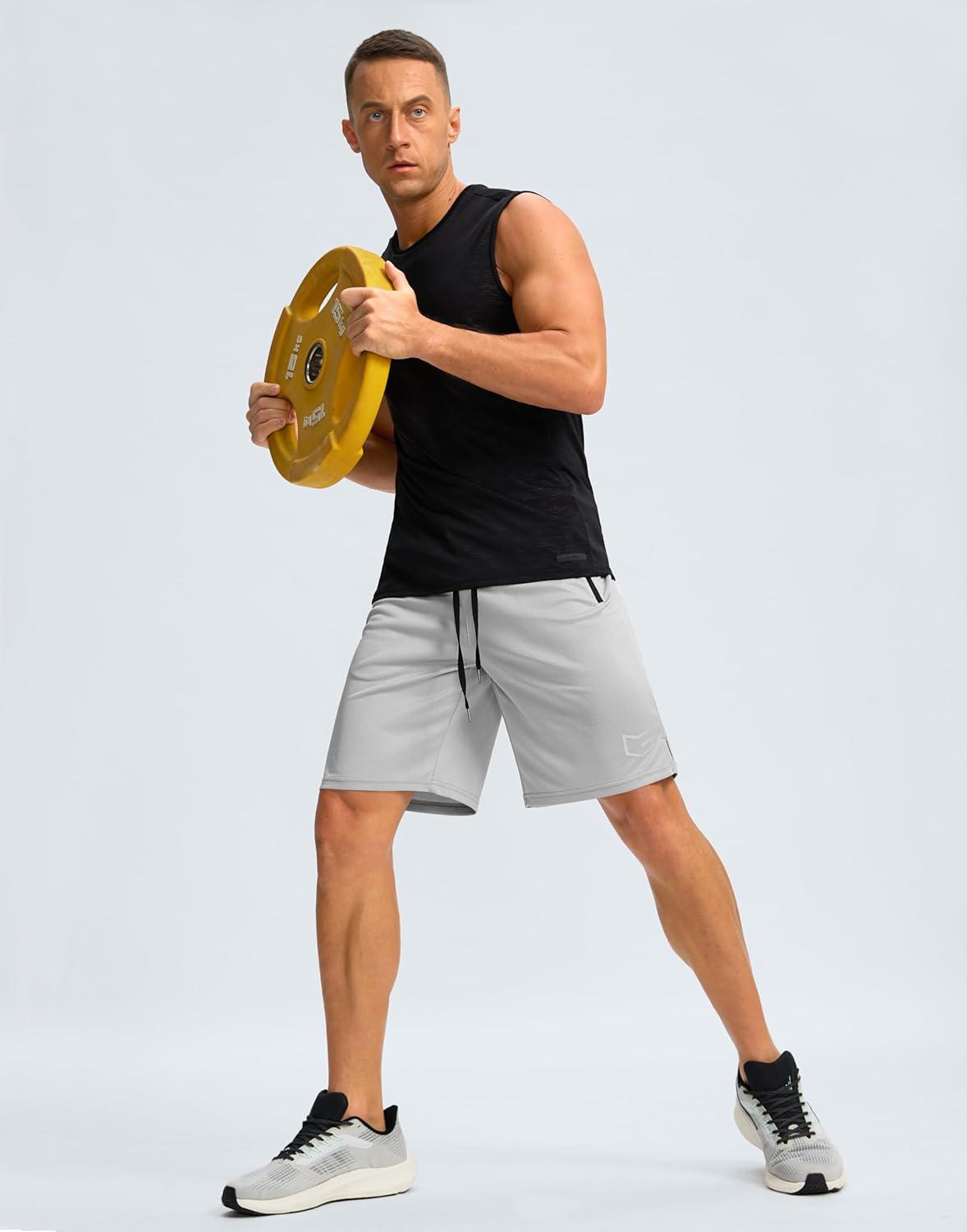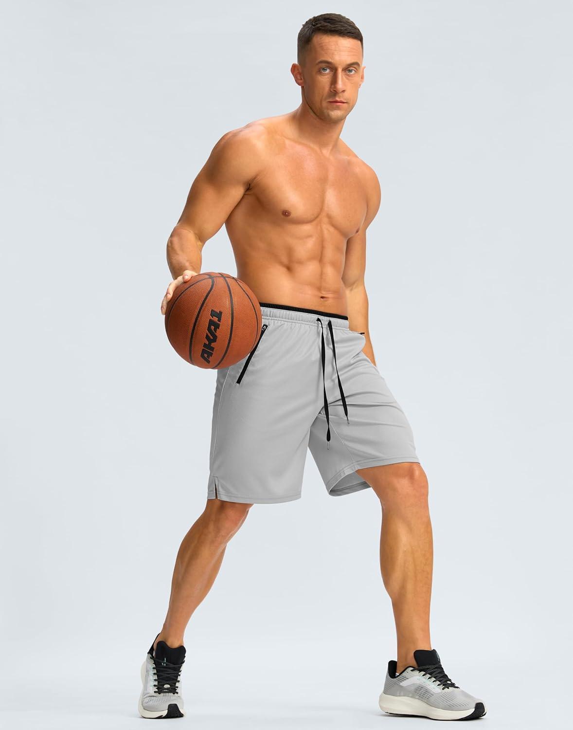 G Gradual Men’s Gym Shorts wtih Zipper Pocket 9″ Athletic Basketball Mesh Shorts for Men Workout Quick Dry Lightiweight(Rhino Grey)