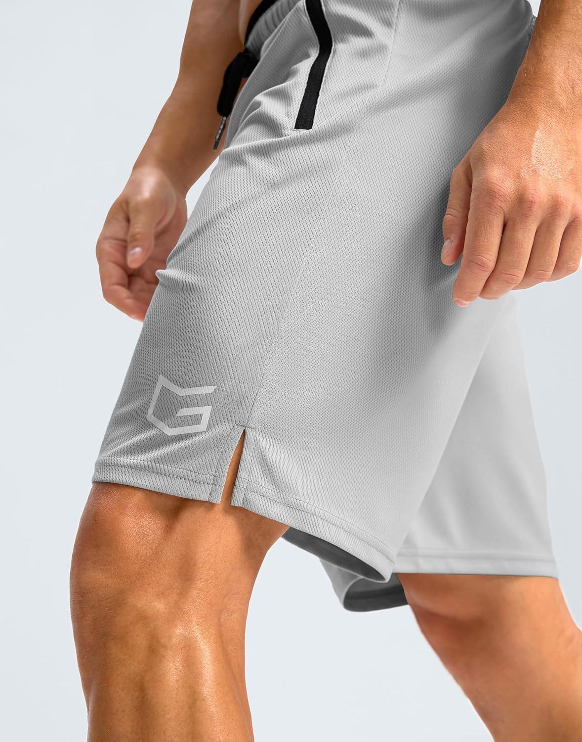 G Gradual Men's Gym Shorts wtih Zipper Pocket 9" Athletic Basketball Mesh Shorts for Men Workout Quick Dry Lightiweight(Rhino Grey)