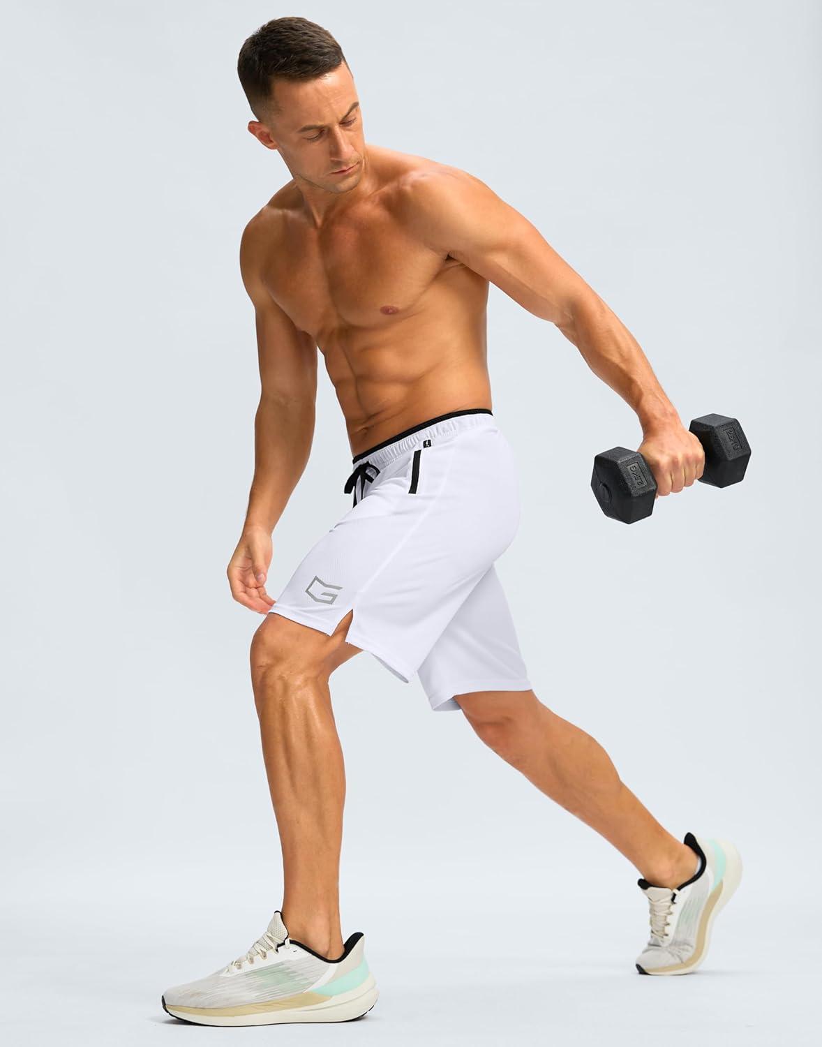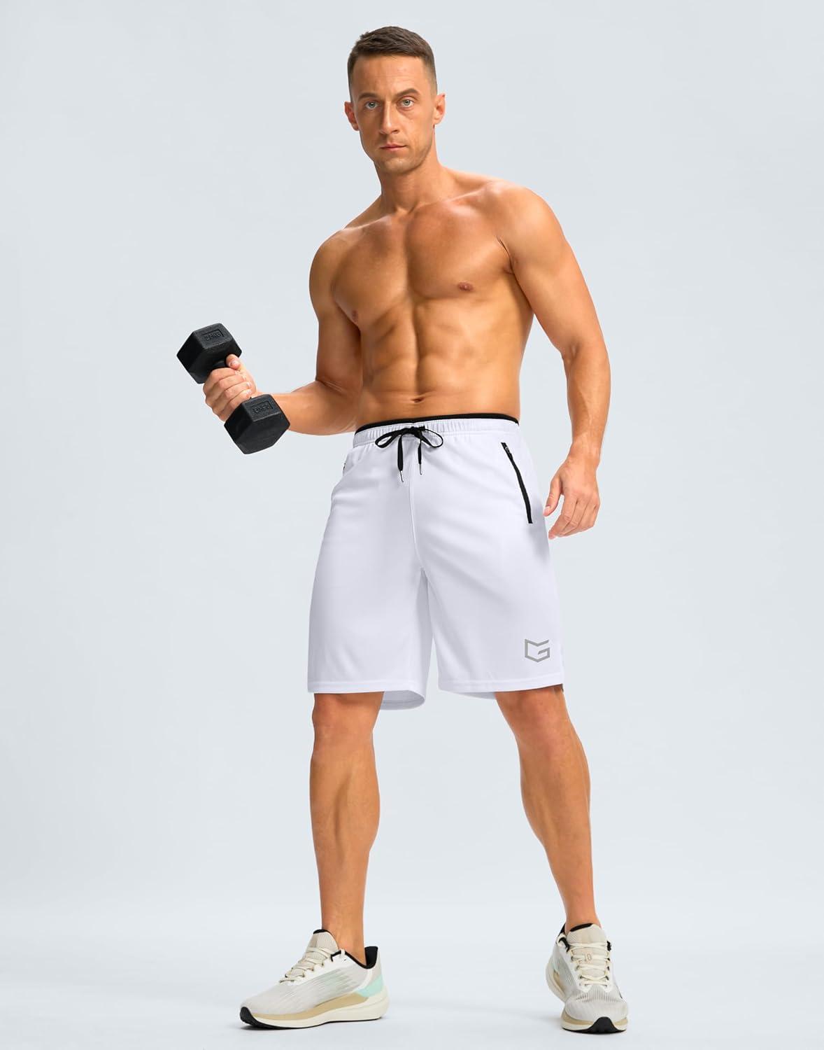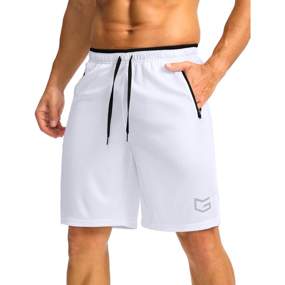 G Gradual Men’s Gym Shorts wtih Zipper Pocket 9″ Athletic Basketball Mesh Shorts for Men Workout Quick Dry Lightiweight(White)