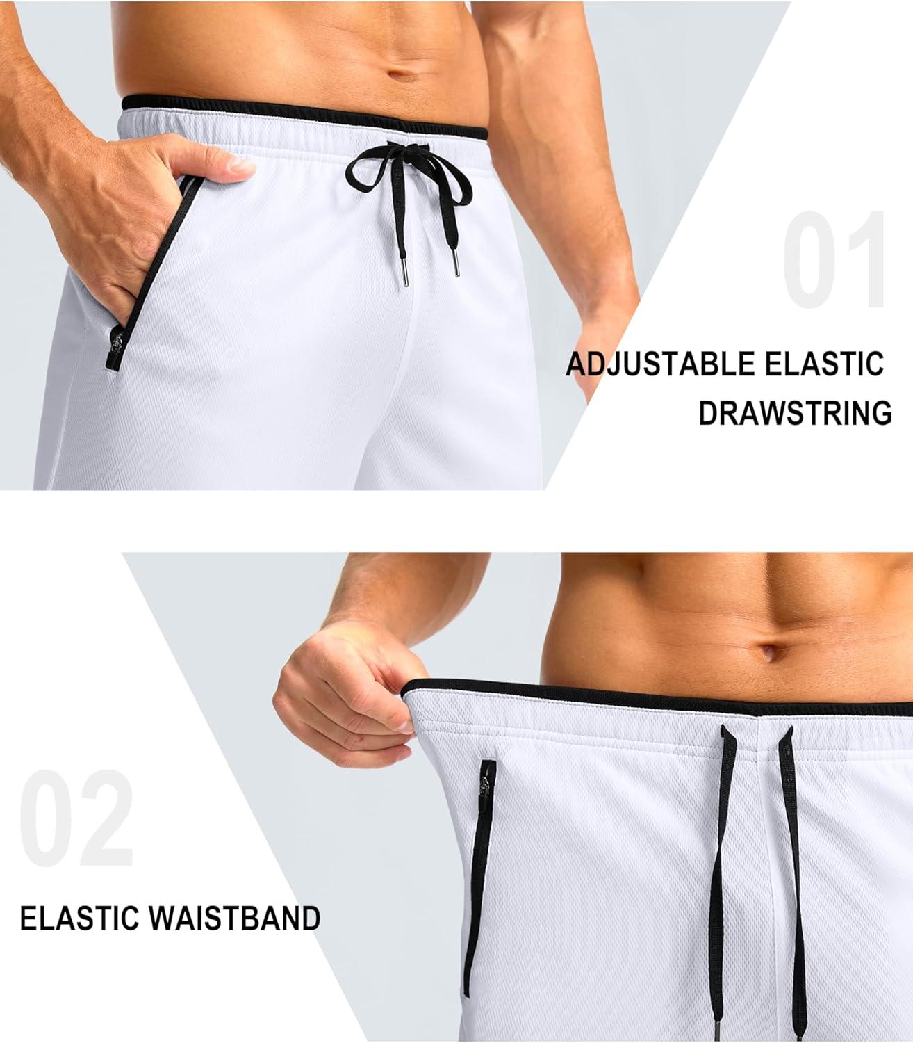 imageG Gradual Mens Gym Shorts wtih Zipper Pocket 9quot Athletic Basketball Mesh Shorts for Men Workout Quick Dry LightiweightWhite