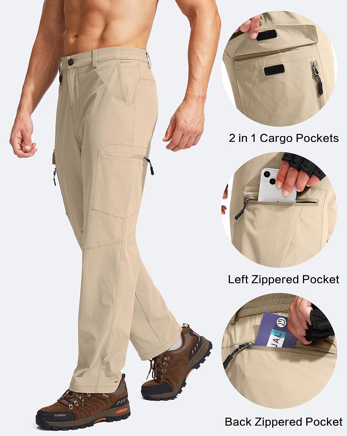 G Gradual Men’s Hiking Cargo Pants Water Resistant Quick Dry Lightweight Outdoor Tactical Pants for Men with Multi Pocket(Khaki)