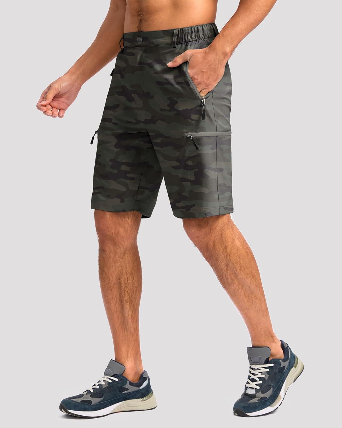 G Gradual Mens Hiking Cargo Shorts with 4 Zipper Pockets 9″ Quick Dry Lightweight Casual Work Shorts for Men Golf Fishing(Green Camo)