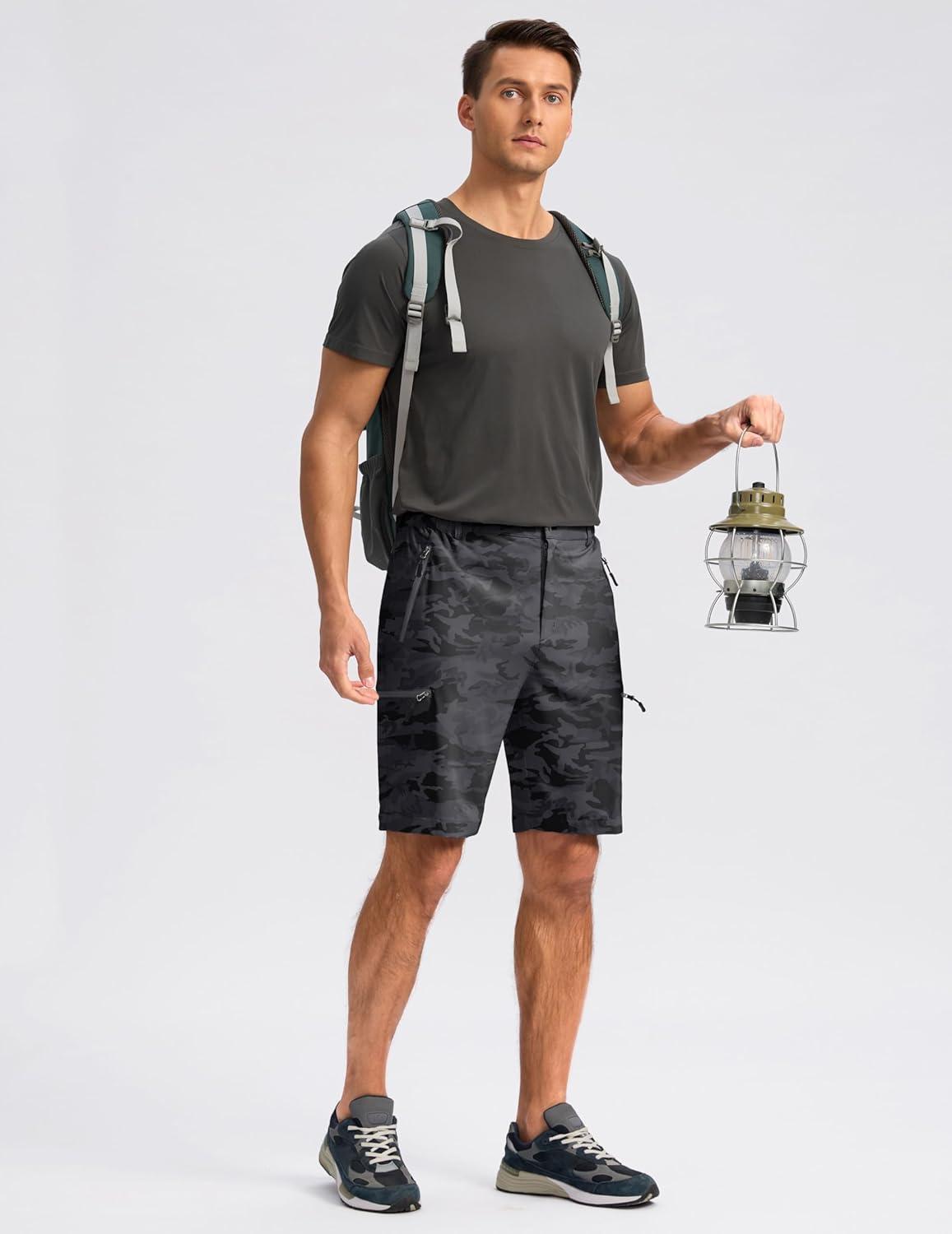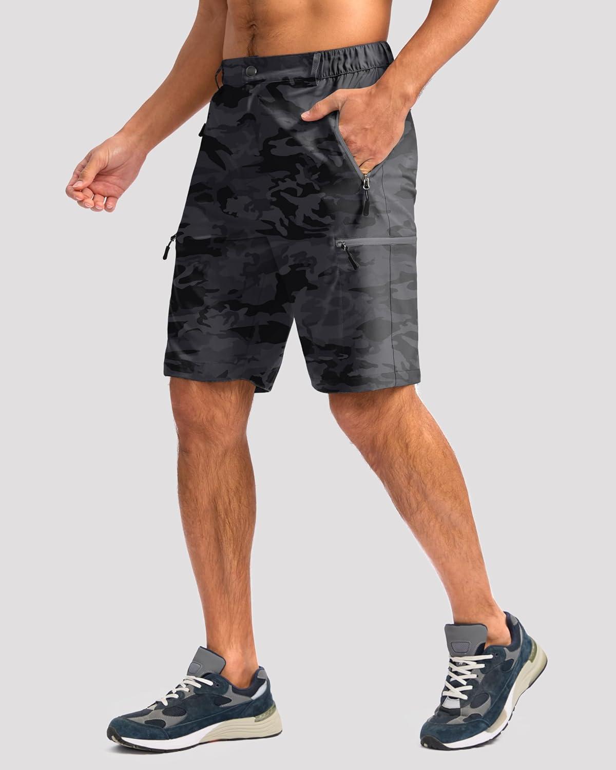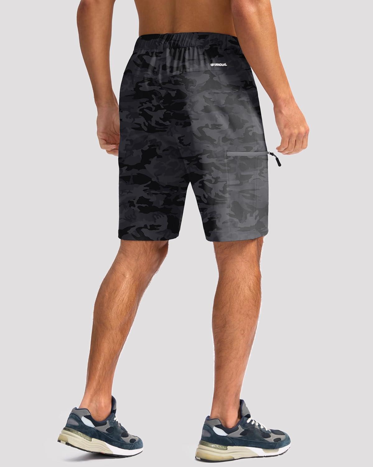 G Gradual Mens Hiking Cargo Shorts with 4 Zipper Pockets 9″ Quick Dry Lightweight Casual Work Shorts for Men Golf Fishing(Grey Camo)