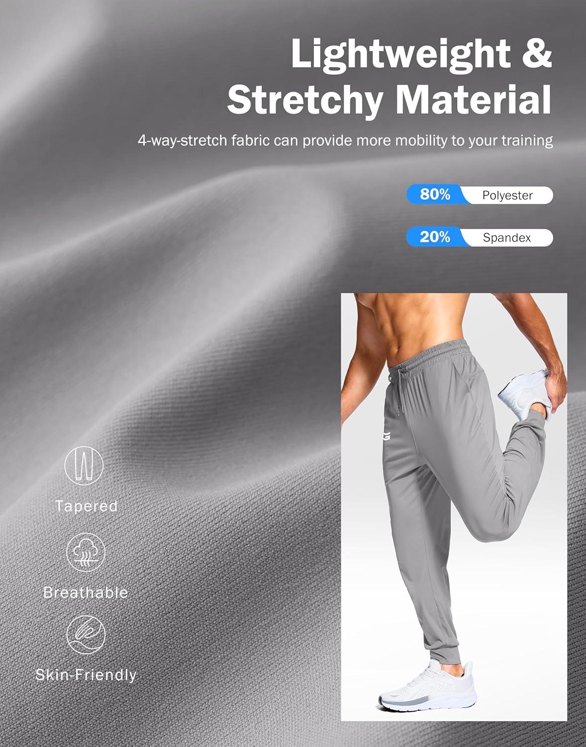 G Gradual Men’s Joggers Lightweight Athletic Workout Pants with Pockets Stretch Track Running Sweatpants for Men Gym Sports(Light Grey)