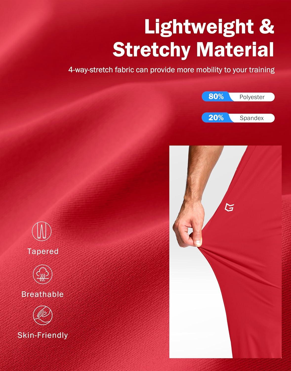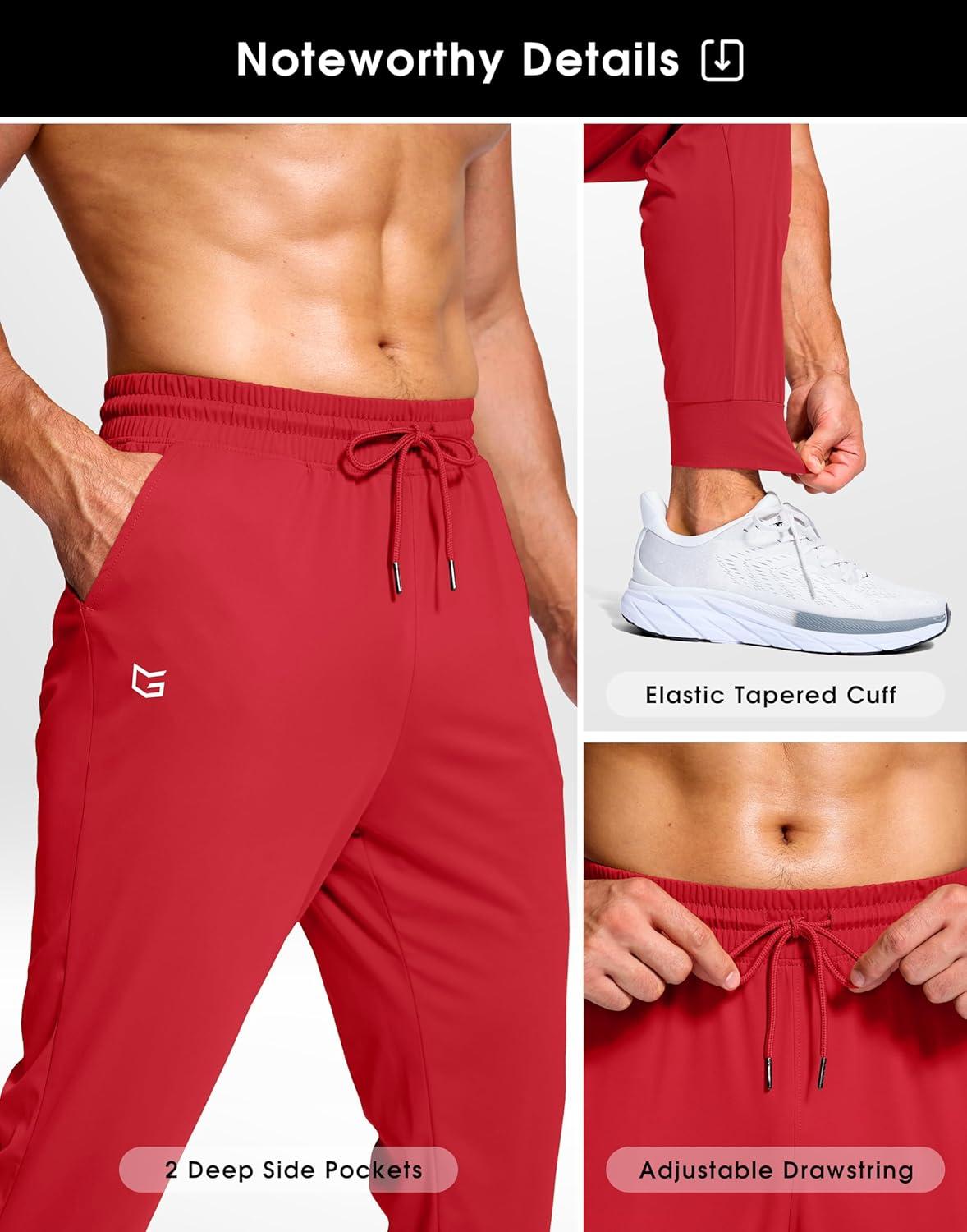 G Gradual Men’s Joggers Lightweight Athletic Workout Pants with Pockets Stretch Track Running Sweatpants for Men Gym Sports(Power Red)