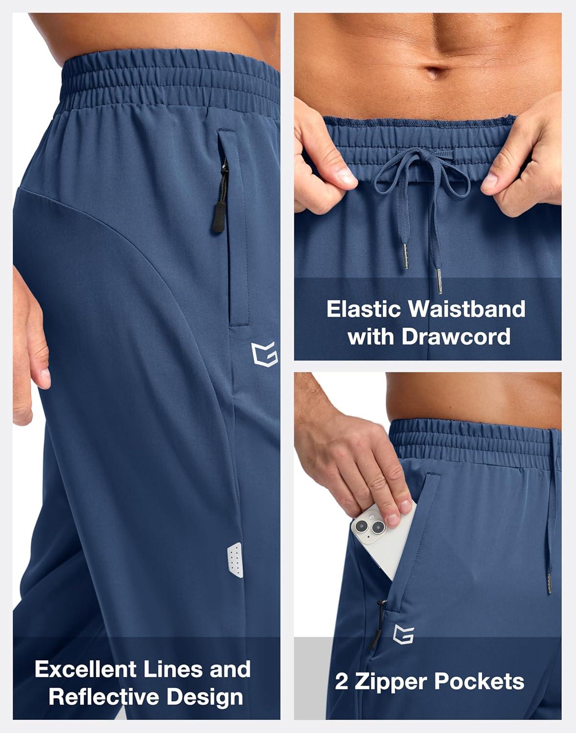 G Gradual Men's Joggers with Zipper Pockets Lightweight Athletic Workout Pants Quick Dry Sweatpants for Men Running Hiking(Blue)