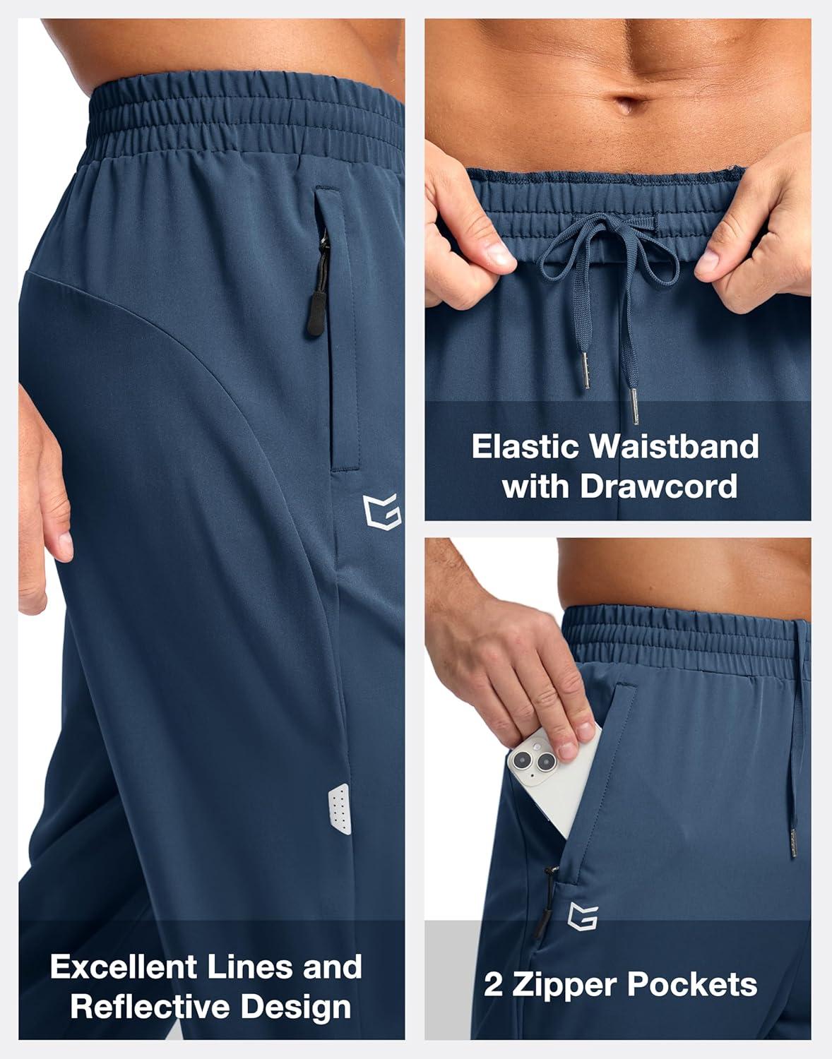 G Gradual Men's Joggers with Zipper Pockets Lightweight Athletic Workout Pants Quick Dry Sweatpants for Men Running Hiking(Dark Blue)