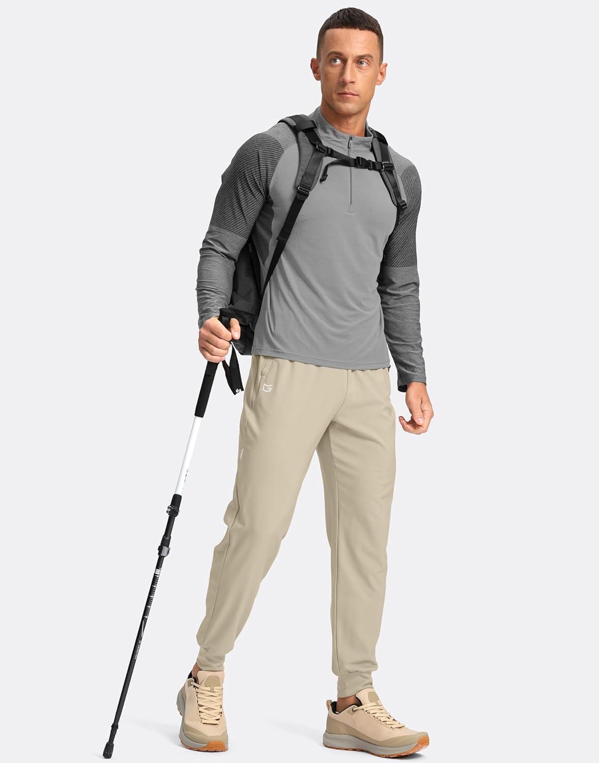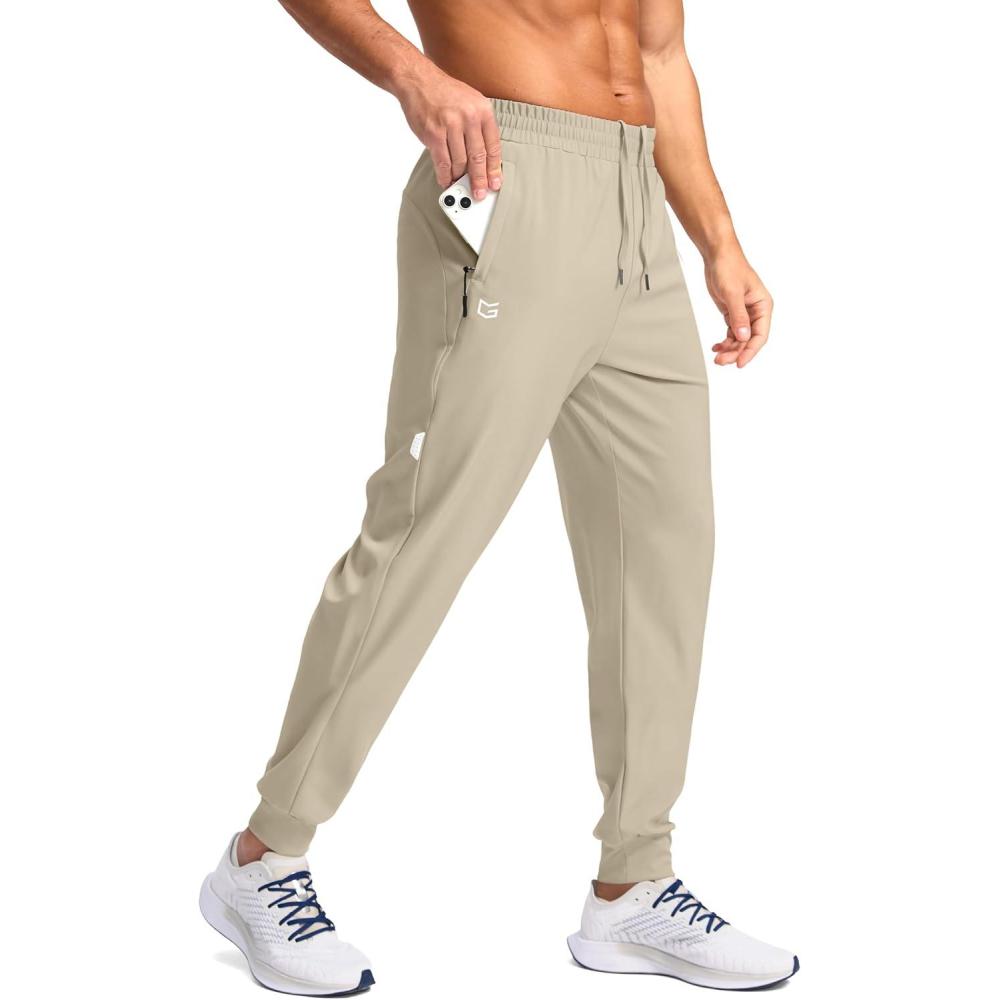 G Gradual Men’s Joggers with Zipper Pockets Lightweight Athletic Workout Pants Quick Dry Sweatpants for Men Running Hiking(Khaki)