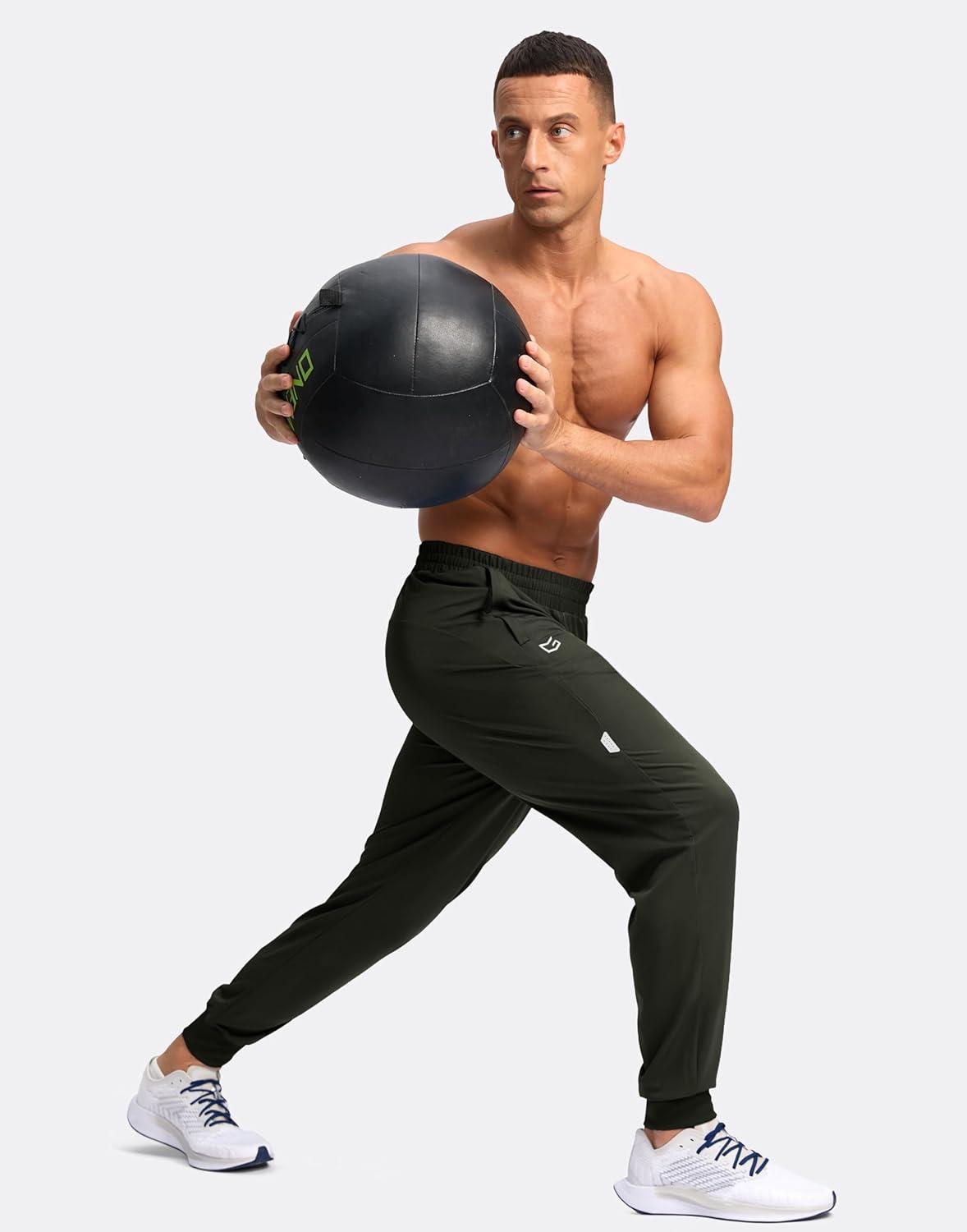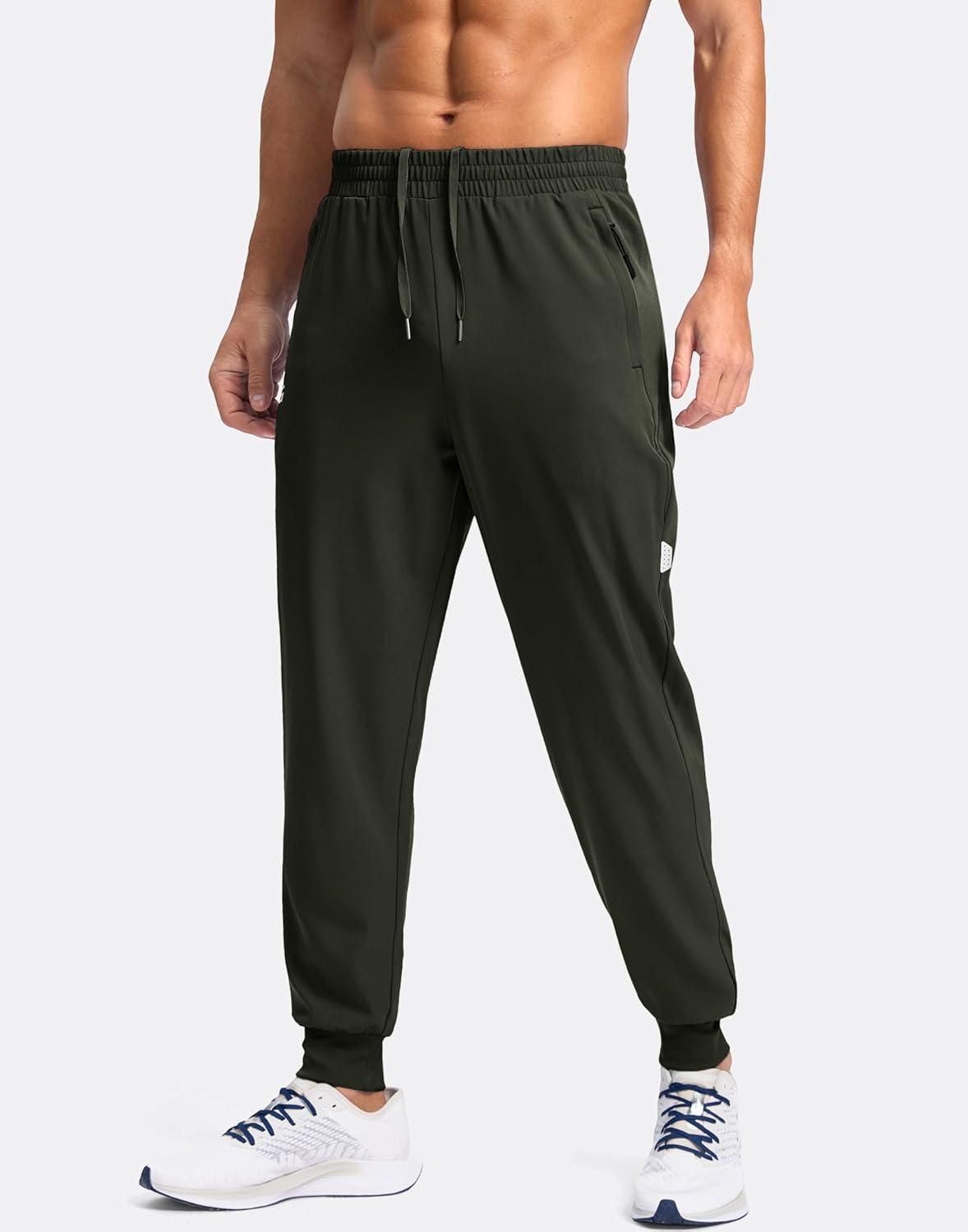 G Gradual Men's Joggers with Zipper Pockets Lightweight Athletic Workout Pants Quick Dry Sweatpants for Men Running Hiking(Olive)