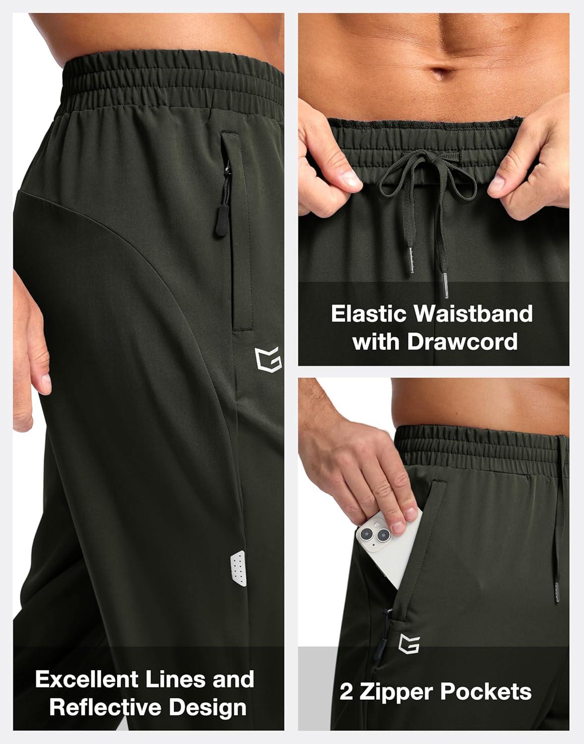 G Gradual Men’s Joggers with Zipper Pockets Lightweight Athletic Workout Pants Quick Dry Sweatpants for Men Running Hiking(Olive)