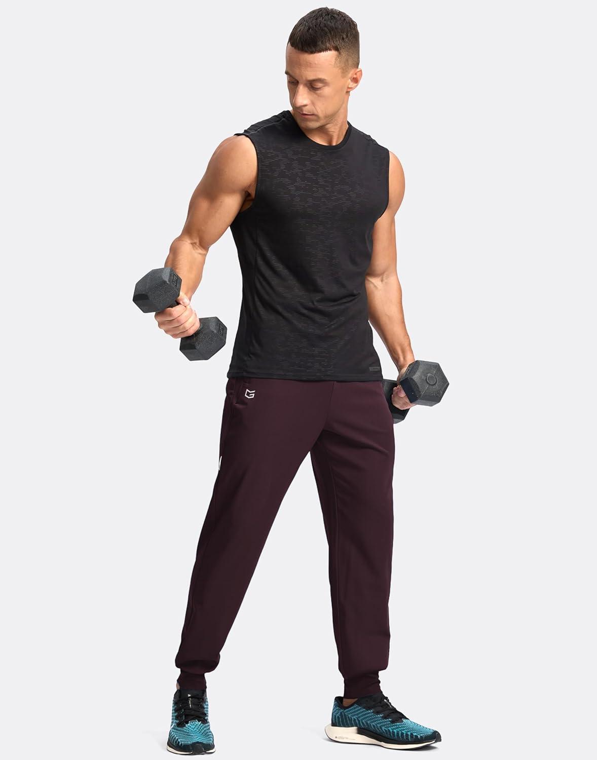 G Gradual Men’s Joggers with Zipper Pockets Lightweight Athletic Workout Pants Quick Dry Sweatpants for Men Running Hiking(Wine)