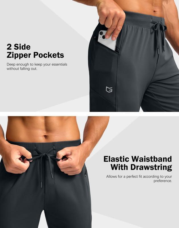 G Gradual Men’s Joggers with Zipper Pockets Stretch Tapered Sweatpants Athletic Pants for Men Workout Running Gym(Grey)