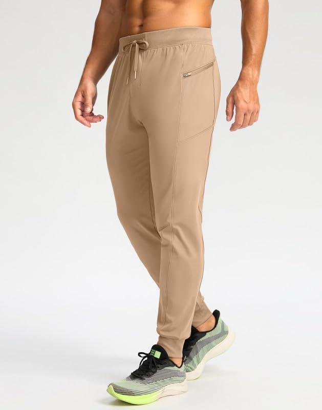 G Gradual Men's Joggers with Zipper Pockets Stretch Tapered Sweatpants Athletic Pants for Men Workout Running Gym(Light Khaki)