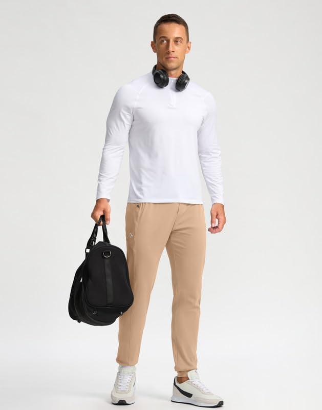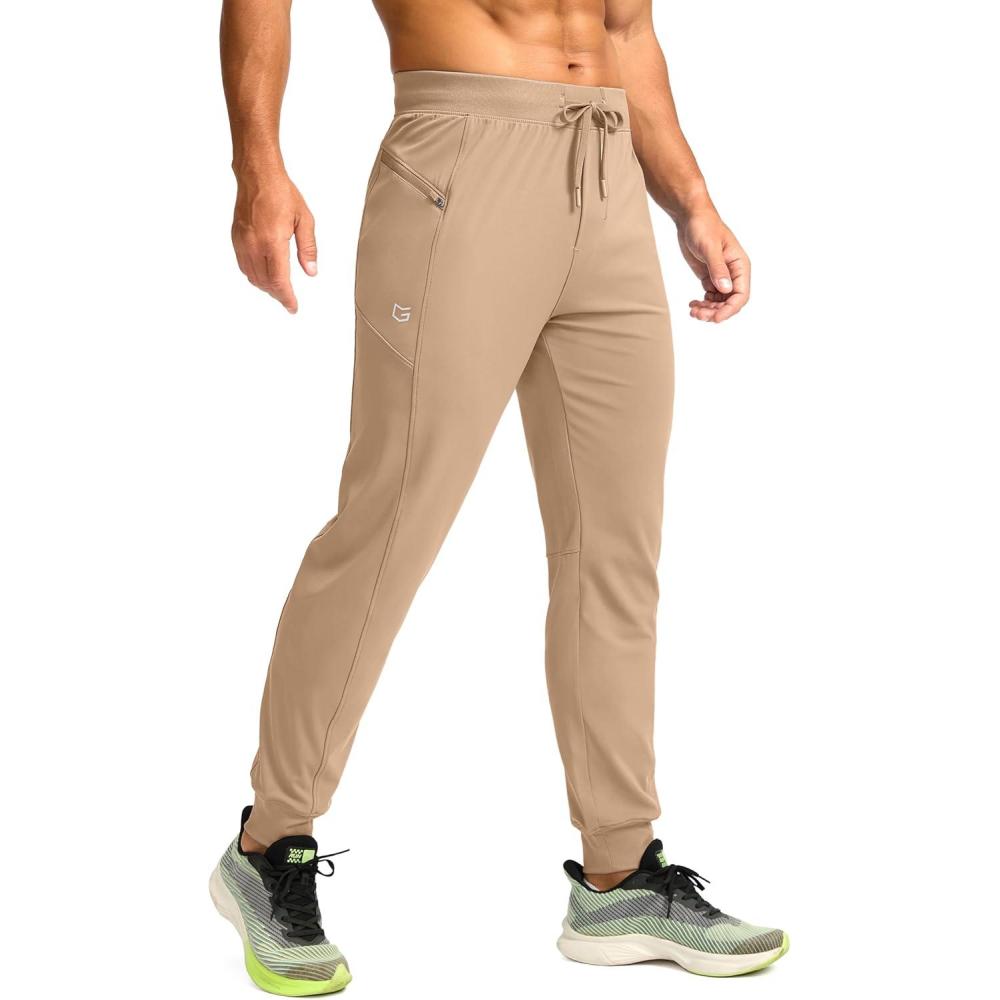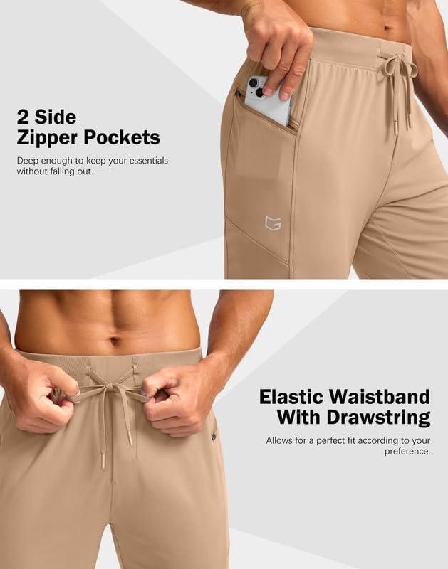 G Gradual Men’s Joggers with Zipper Pockets Stretch Tapered Sweatpants Athletic Pants for Men Workout Running Gym(Light Khaki)