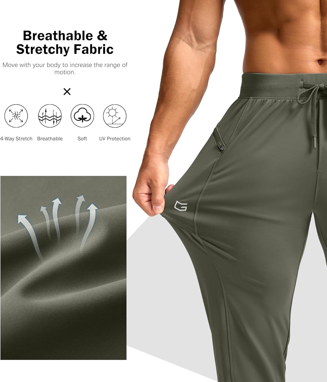 G Gradual Men’s Joggers with Zipper Pockets Stretch Tapered Sweatpants Athletic Pants for Men Workout Running Gym(Sage Green)