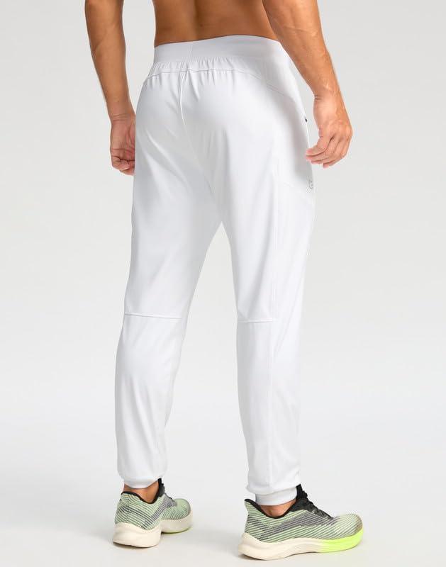 G Gradual Men’s Joggers with Zipper Pockets Stretch Tapered Sweatpants Athletic Pants for Men Workout Running Gym(White)