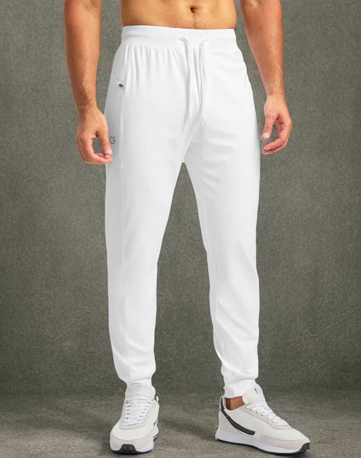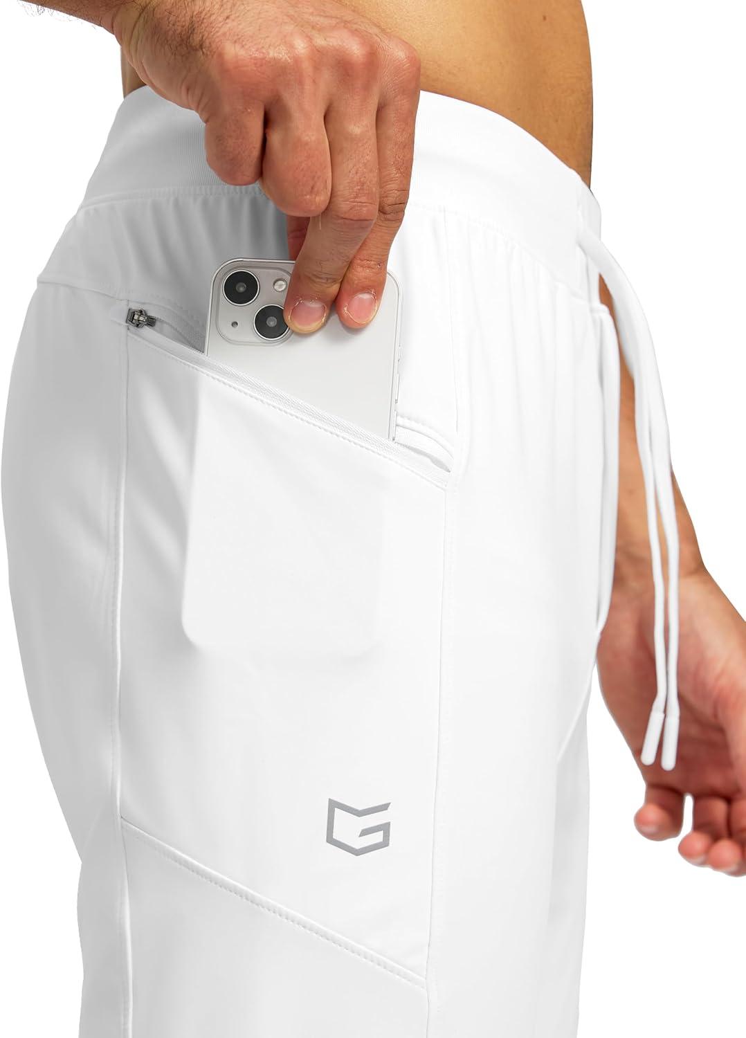 G Gradual Men's Joggers with Zipper Pockets Stretch Tapered Sweatpants Athletic Pants for Men Workout Running Gym(White)