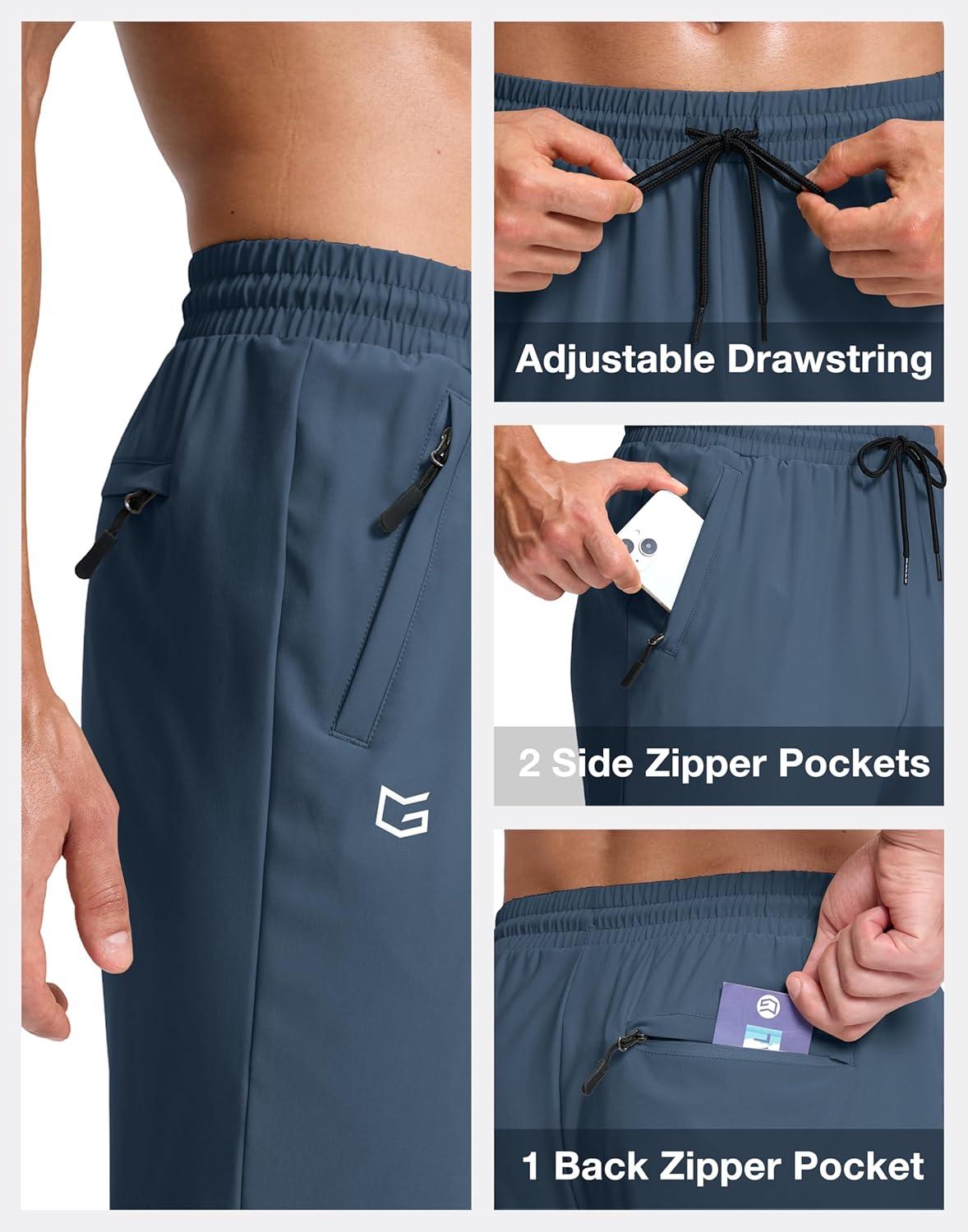 G Gradual Men’s Lightweight Pants with 3 Zipper Pockets Athletic Workout Sweatpants Quick Dry Running Hiking Pants for Men(Dark Blue)