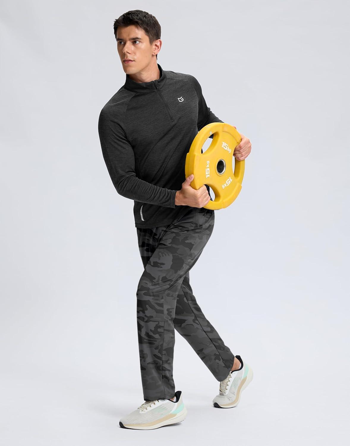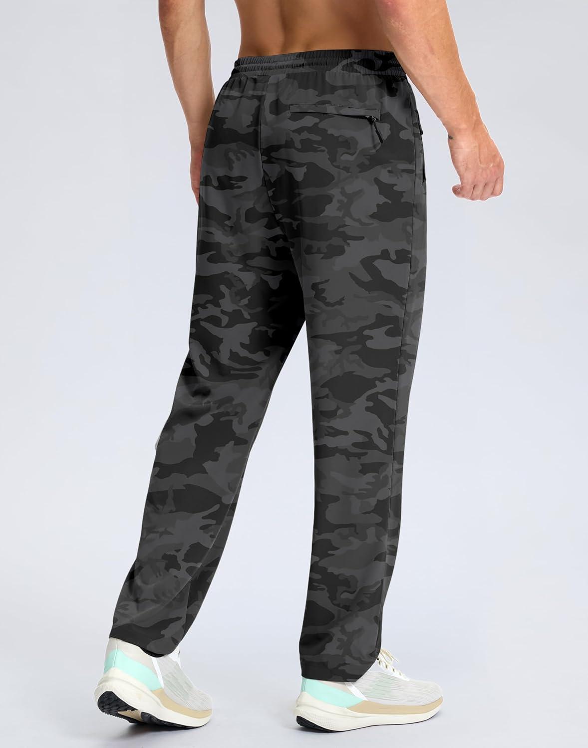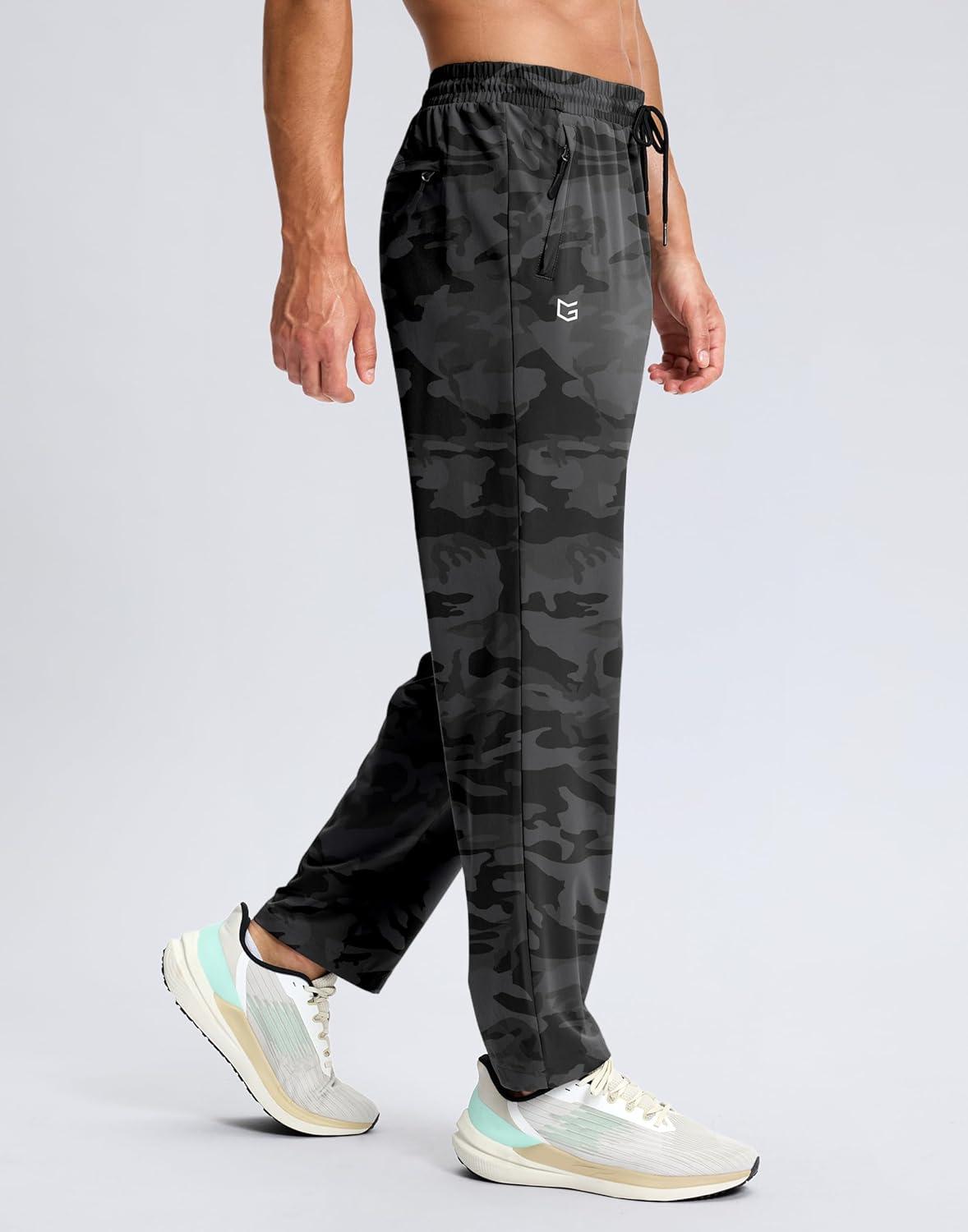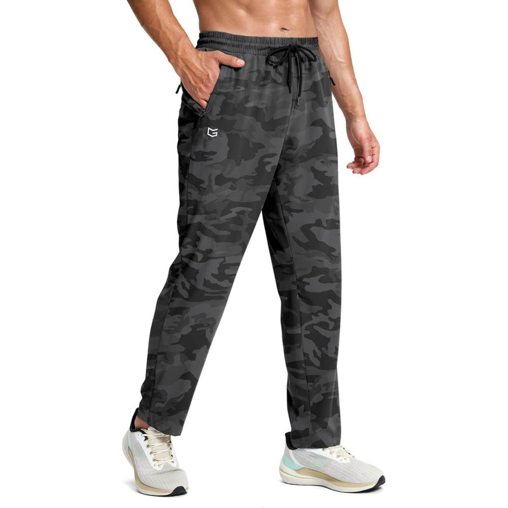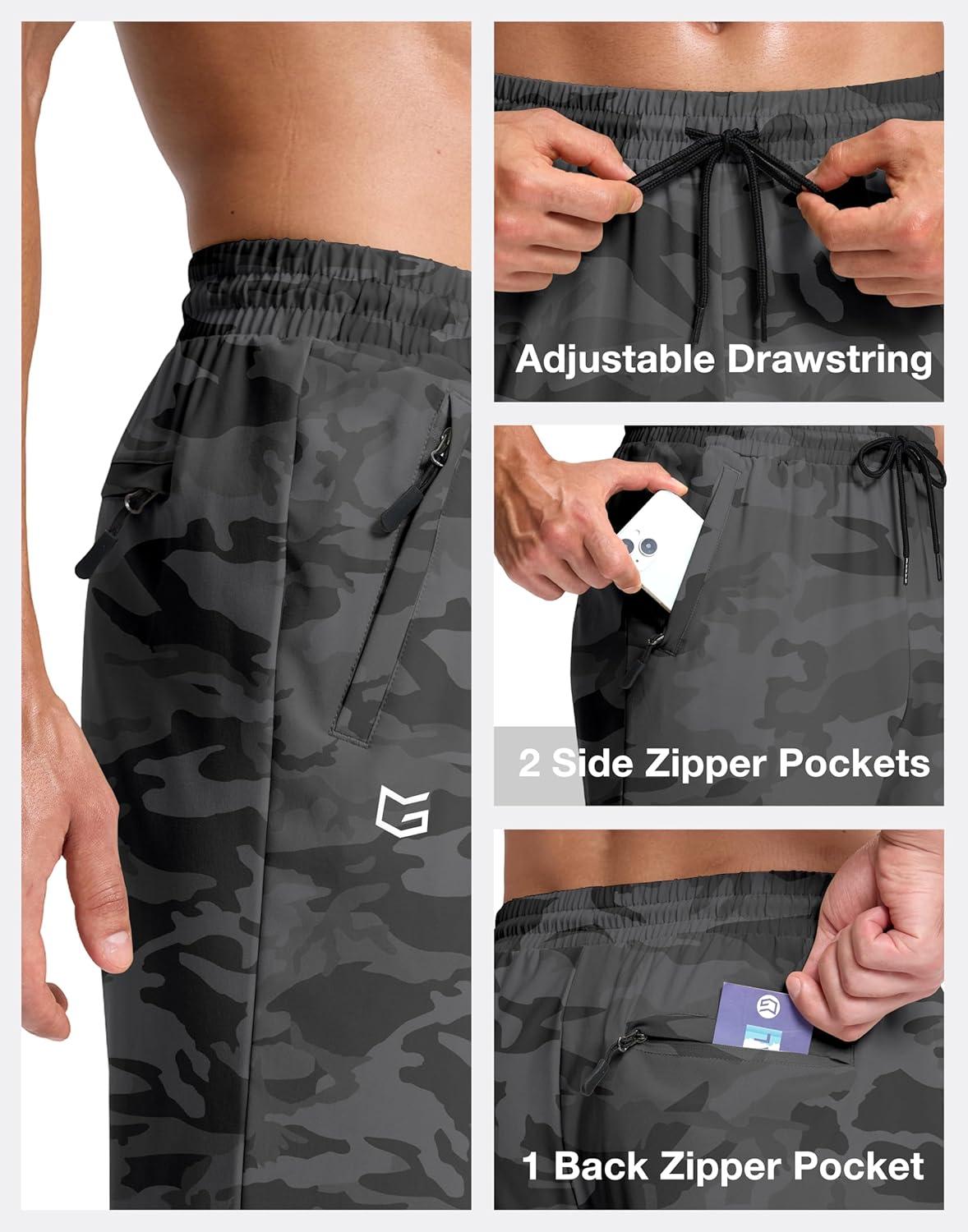 G Gradual Men’s Lightweight Pants with 3 Zipper Pockets Athletic Workout Sweatpants Quick Dry Running Hiking Pants for Men(Grey Camo)