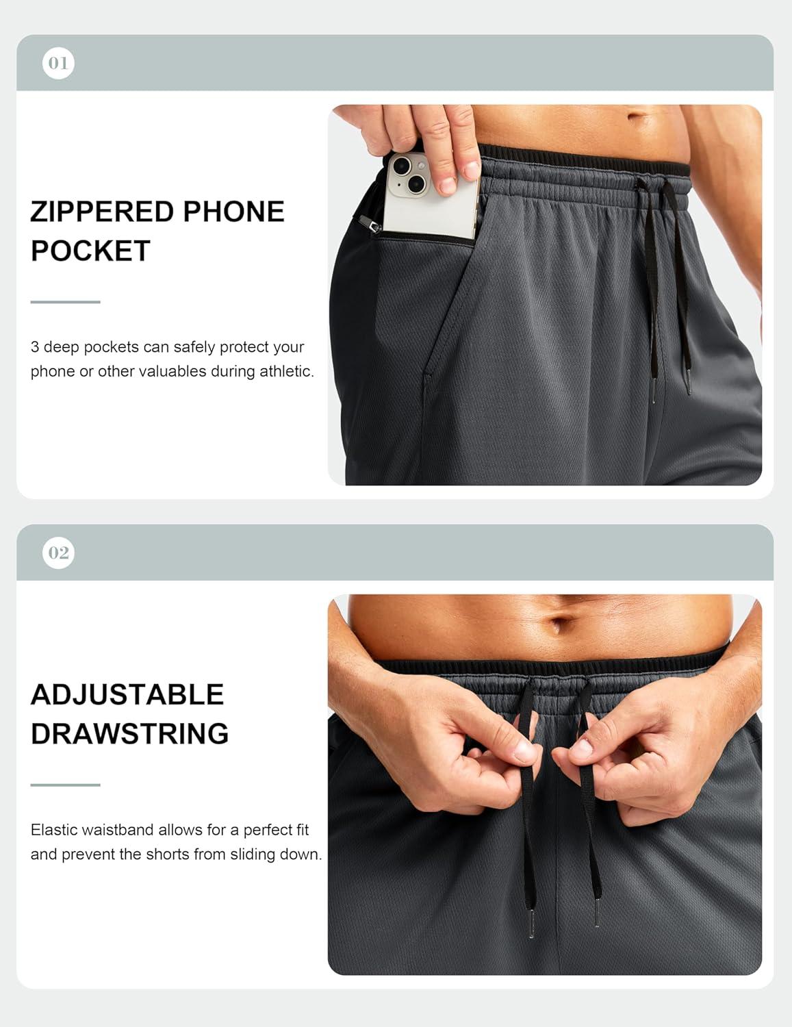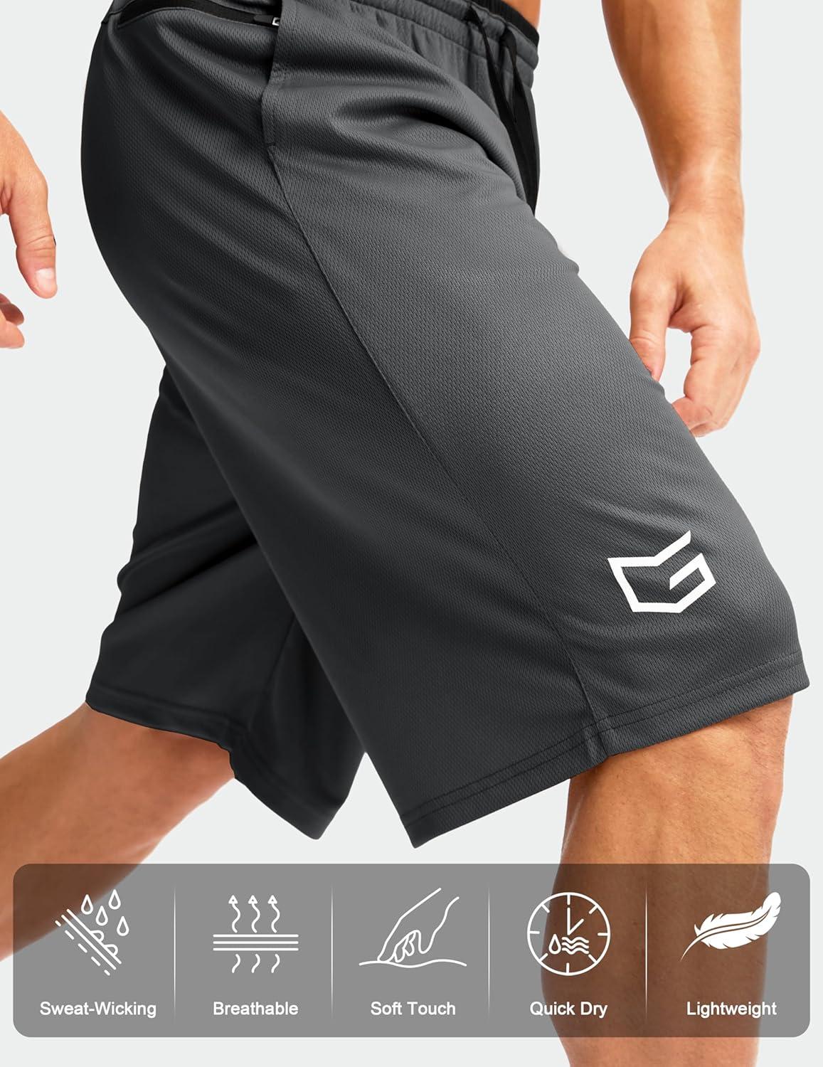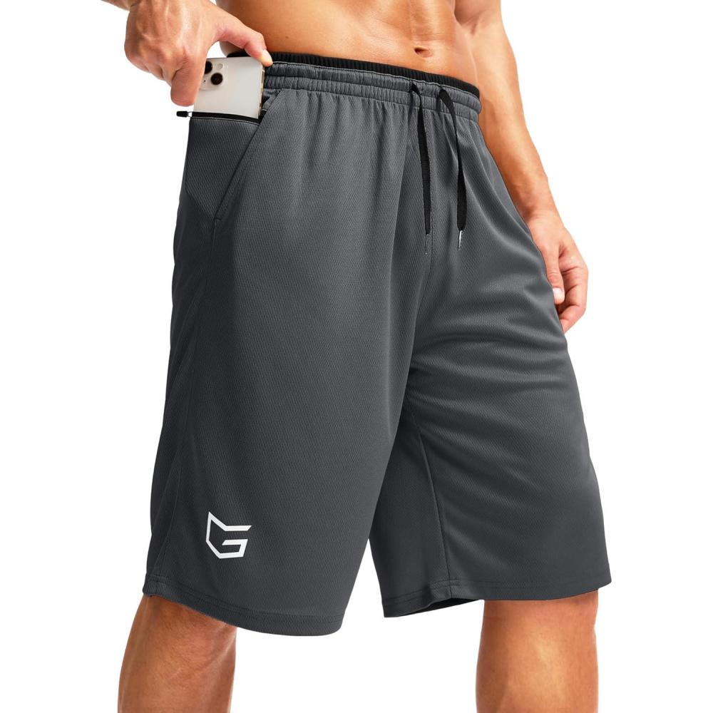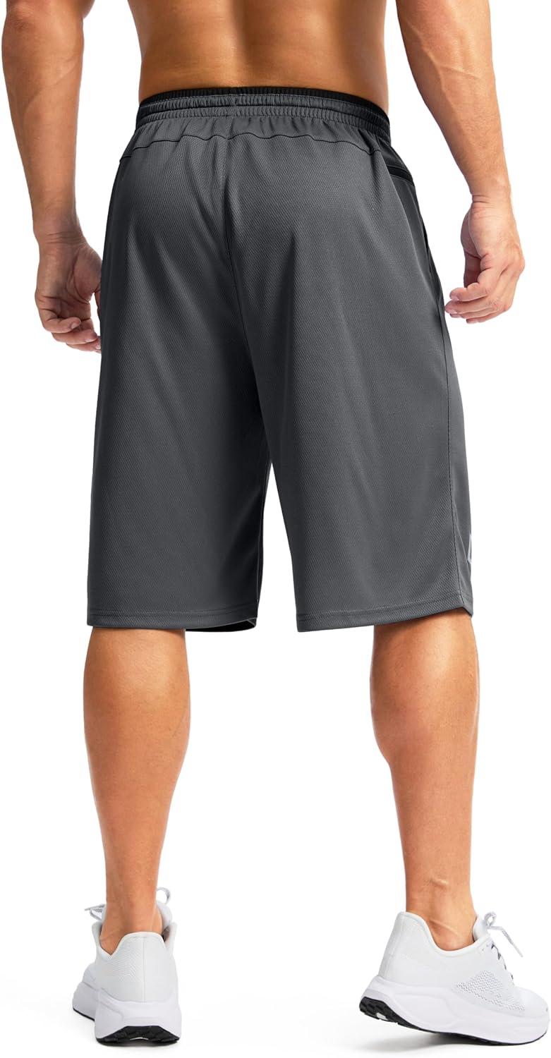 G Gradual Men’s Long Basketball Shorts with Zipper Pocket 11” Quick Dry Gym Shorts Lightweight Mesh Athletic Shorts for Men(Dark Gray)