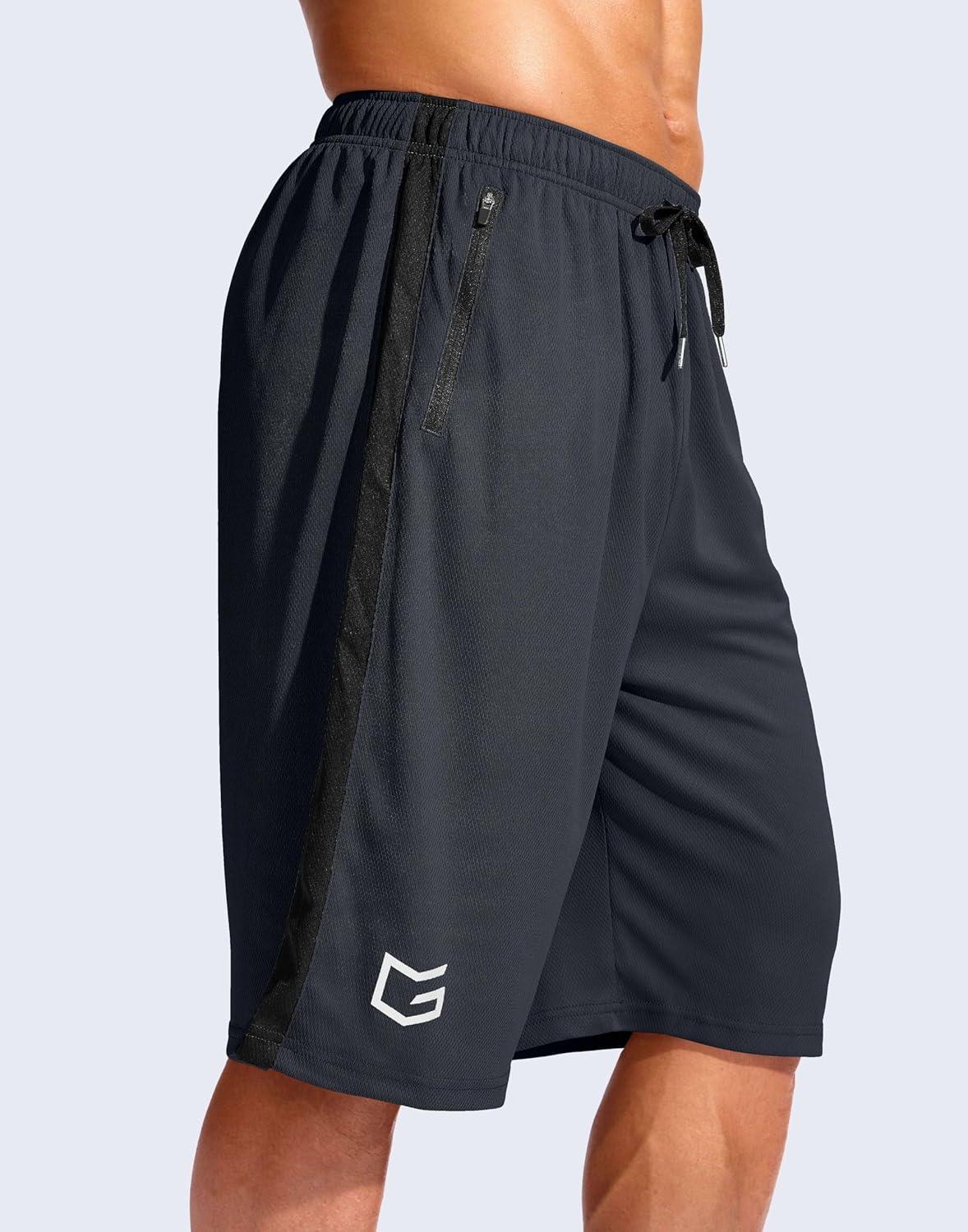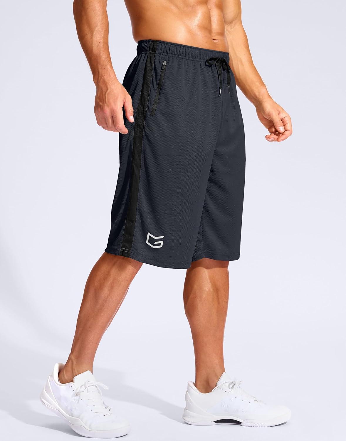 G Gradual Men's Long Basketball Shorts with Zipper Pocket 11'' Quick Dry Gym Shorts Lightweight Mesh Athletic Shorts for Men(Dark Grey)