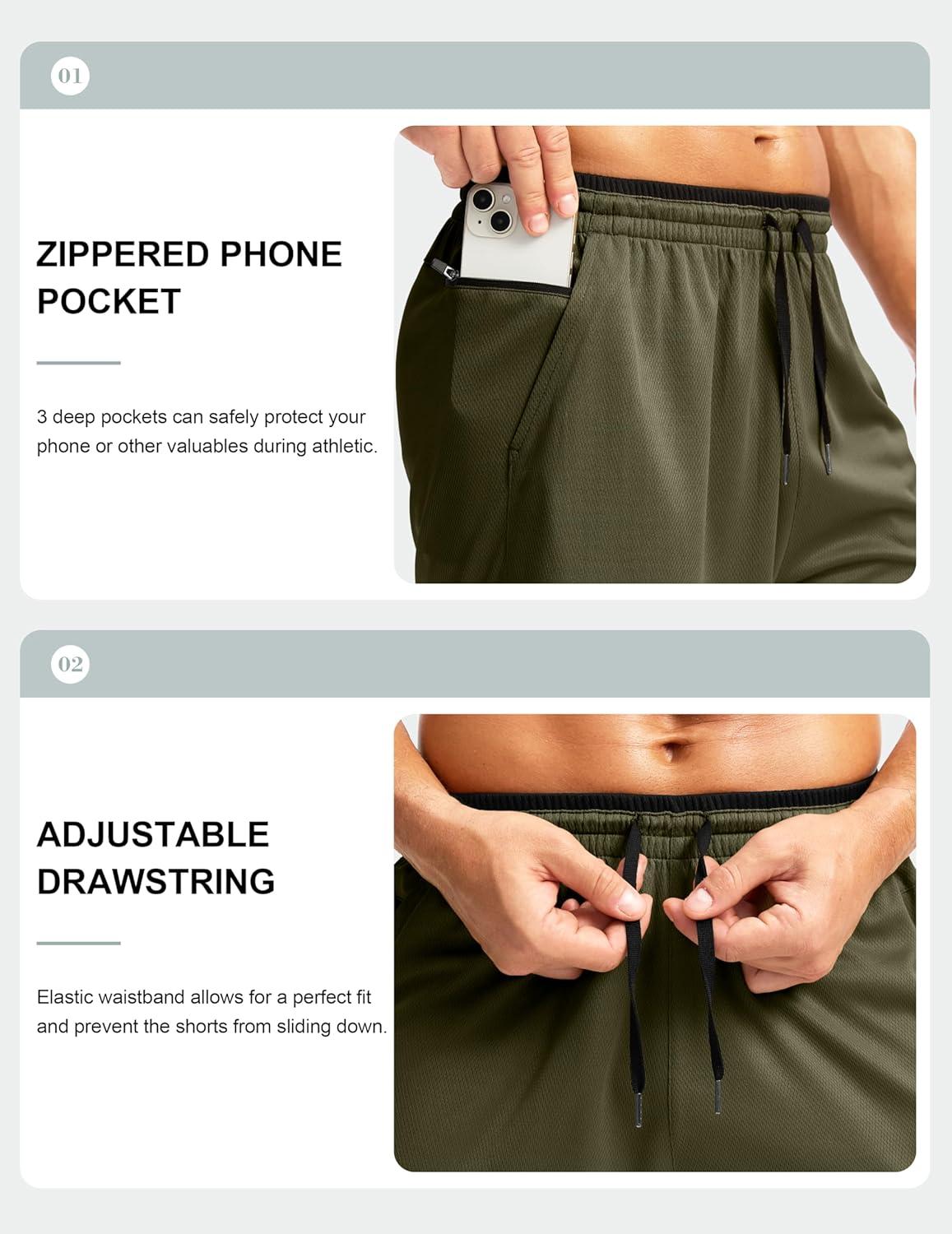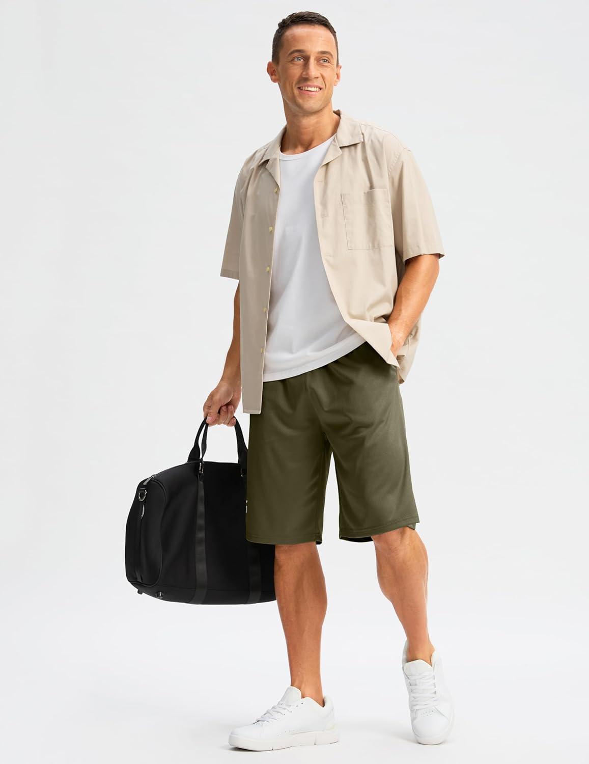 G Gradual Men’s Long Basketball Shorts with Zipper Pocket 11” Quick Dry Gym Shorts Lightweight Mesh Athletic Shorts for Men(Dark Olive)