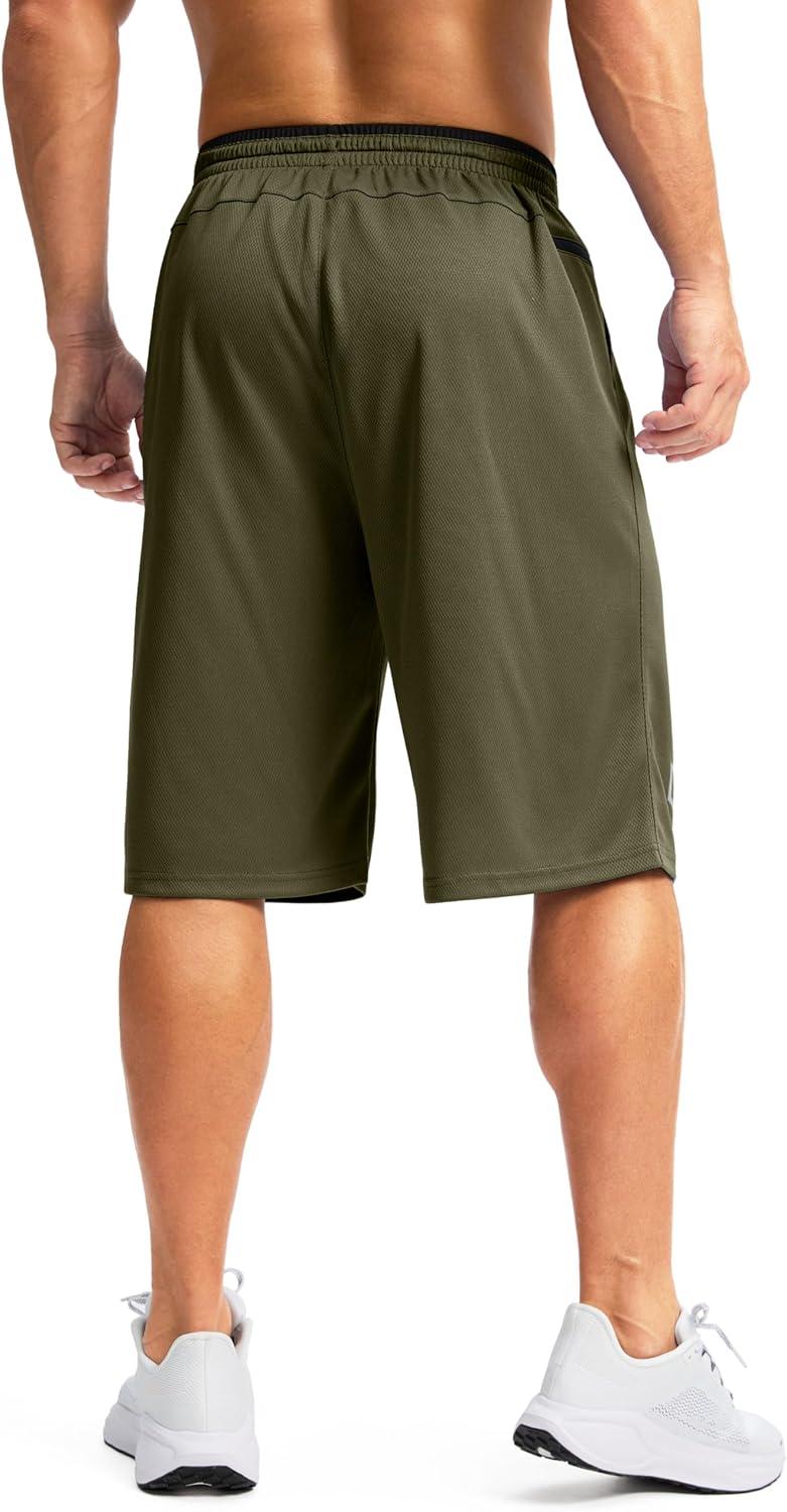 G Gradual Men's Long Basketball Shorts with Zipper Pocket 11'' Quick Dry Gym Shorts Lightweight Mesh Athletic Shorts for Men(Dark Olive)